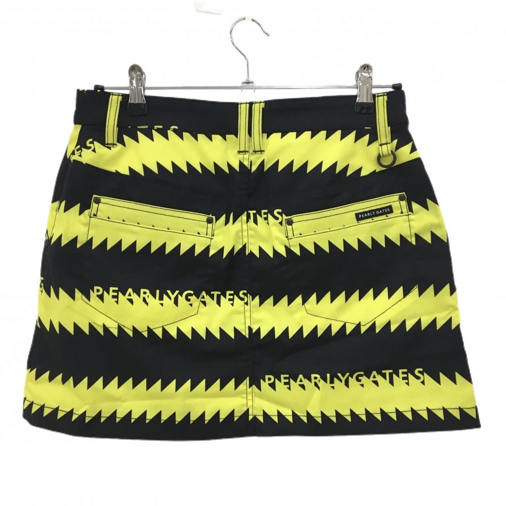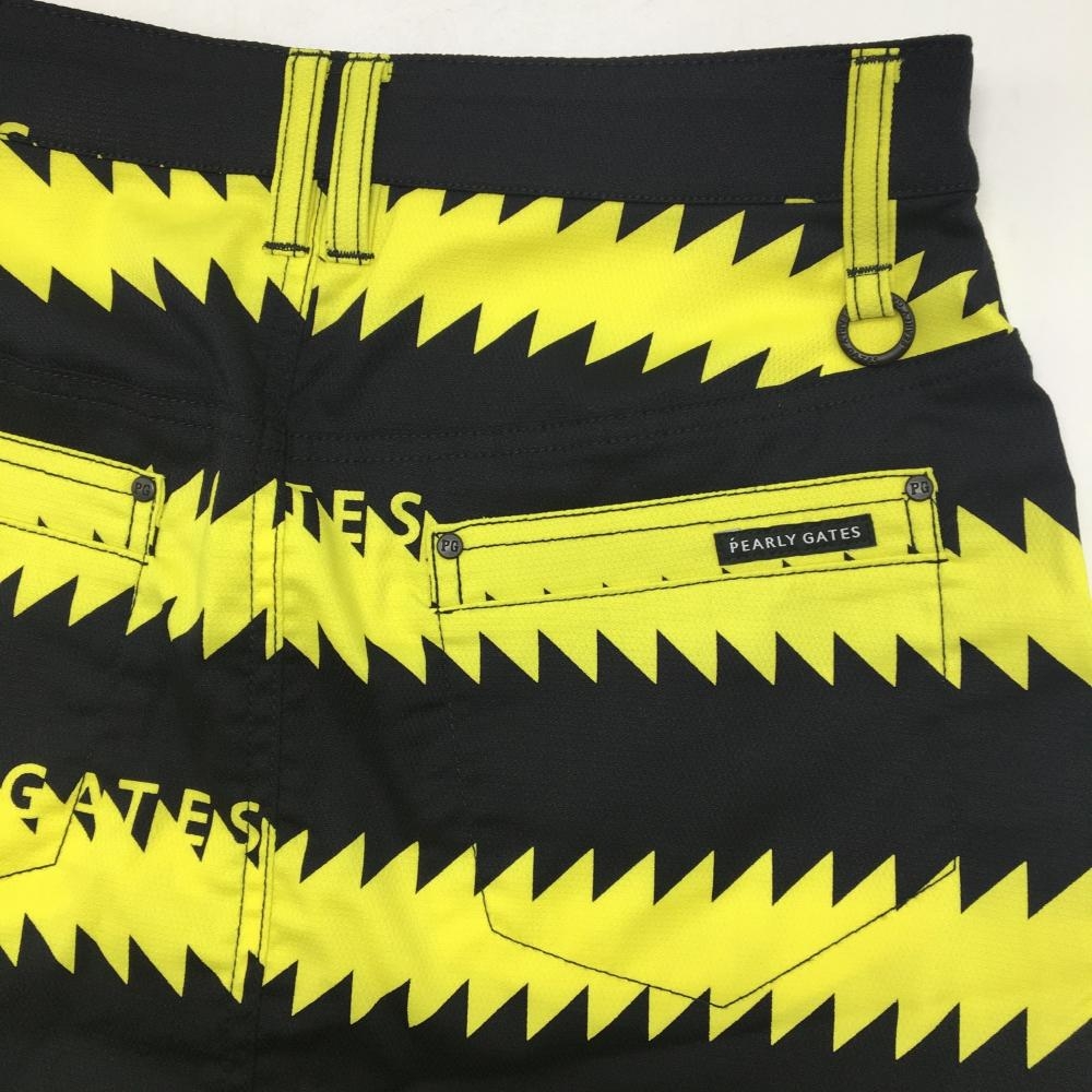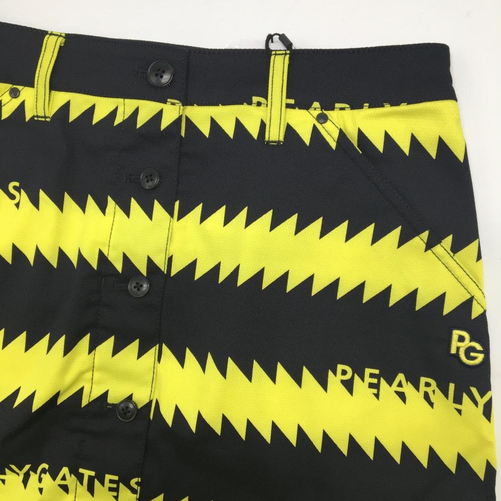 【新品】パーリーゲイツ スカート 黒×イエロー ギザギザボーダー フロントフェイクボタン レディース 1(M) ゴルフウェア PEARLY GATES