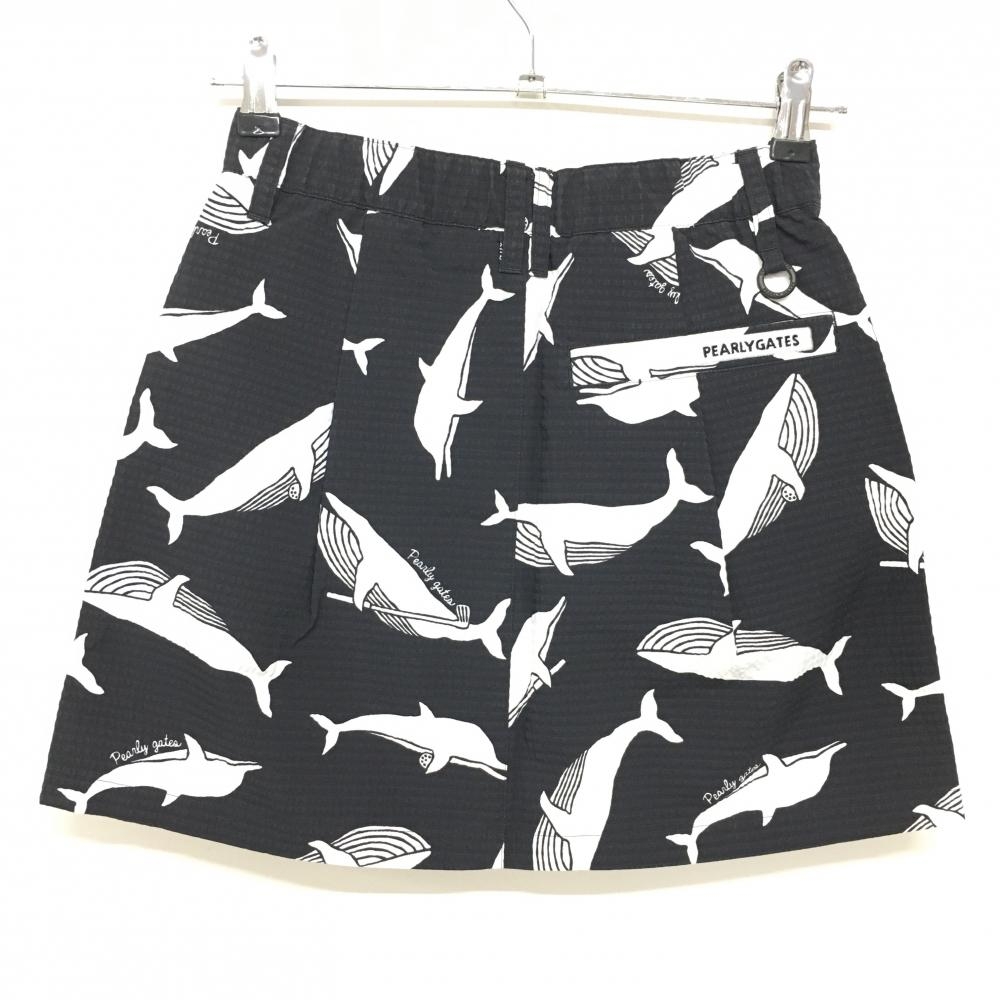 【新品】パーリーゲイツ スカート ネイビー×白 総柄 イルカ クジラ サッカー生地 レディース 00(XS) ゴルフウェア PEARLY GATES