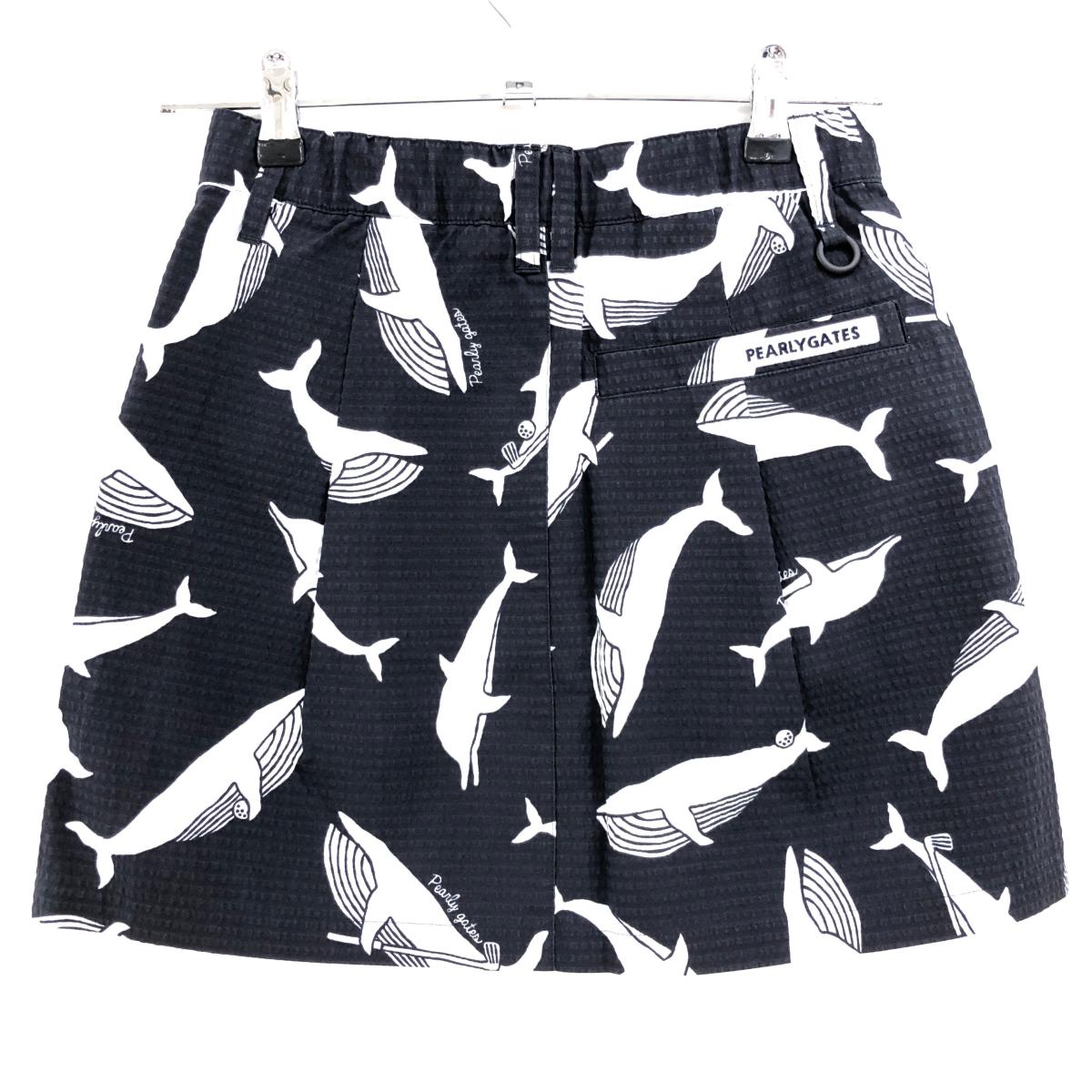 【新品】パーリーゲイツ スカート ネイビー×白 総柄 イルカ クジラ サッカー生地 レディース 00(XS) ゴルフウェア PEARLY GATES