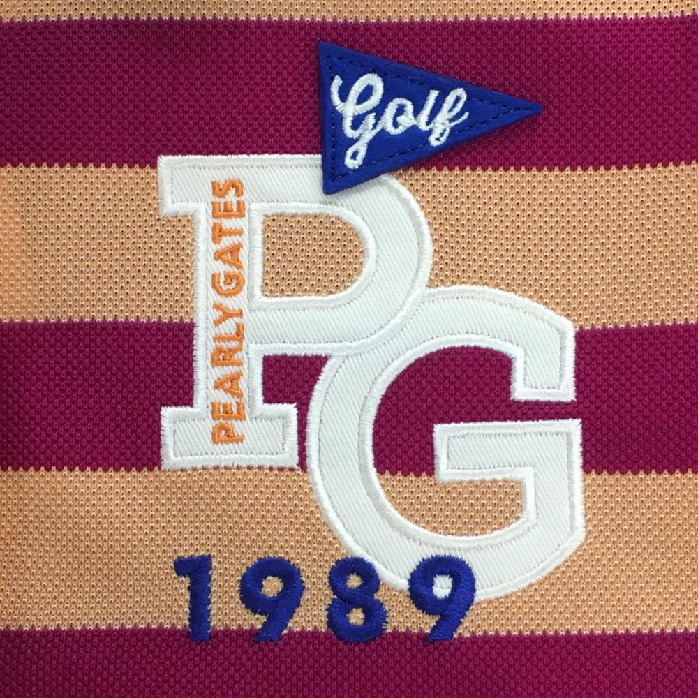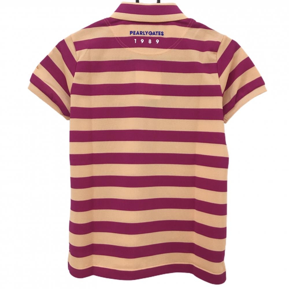 【新品】パーリーゲイツ 半袖ポロシャツ ライトオレンジ×パープル ボーダー ロゴ刺しゅう レディース 0(S) ゴルフウェア PEARLY GATES