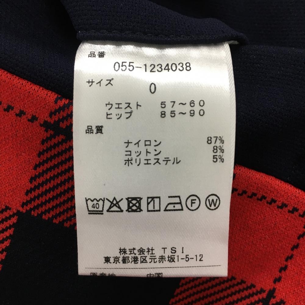 【新品】パーリーゲイツ スカート レッド×ネイビー チェック柄 ロゴ白 ウエスト調節紐 ひざ丈 レディース 0(S) ゴルフウェア PEARLY GATES