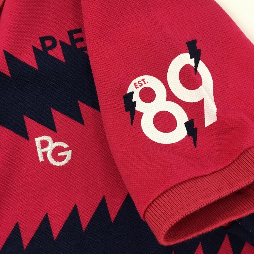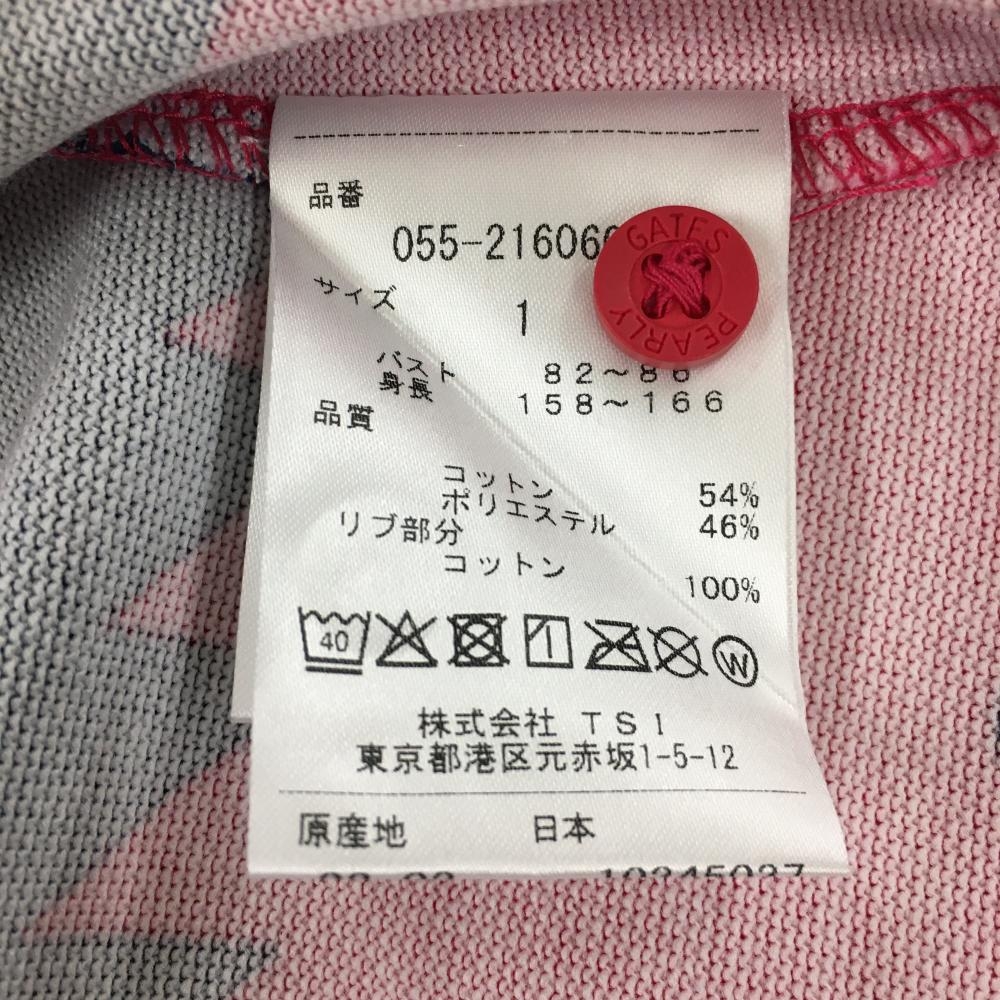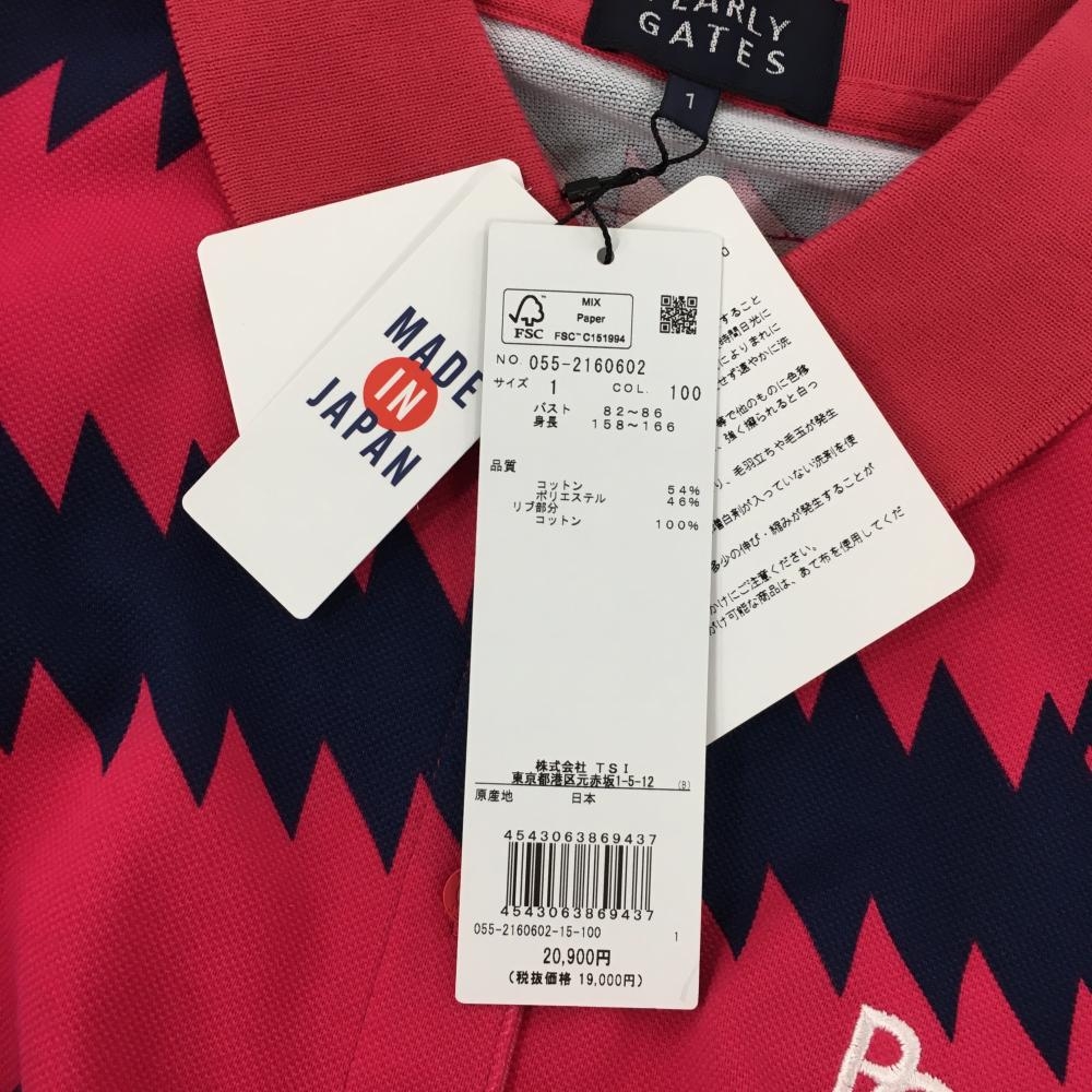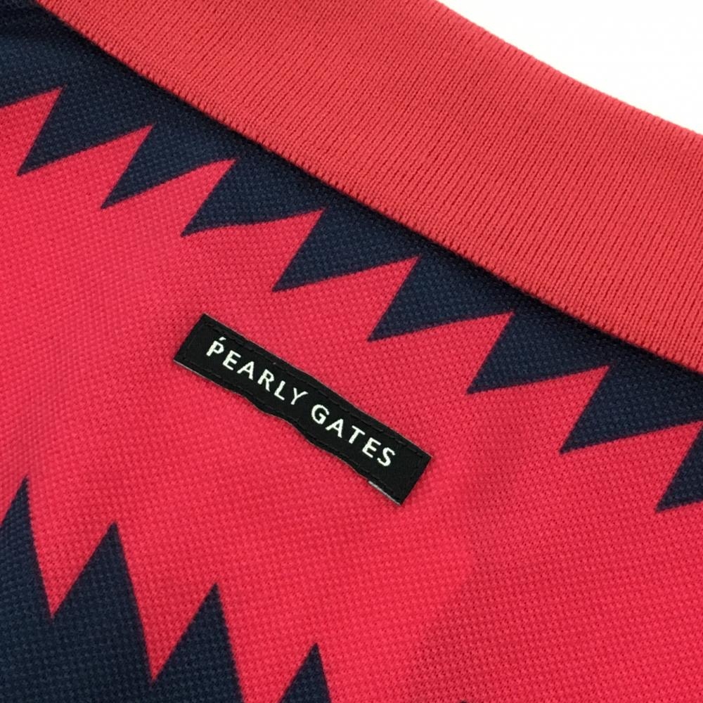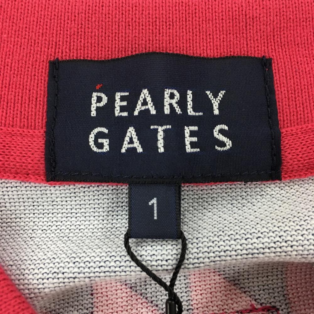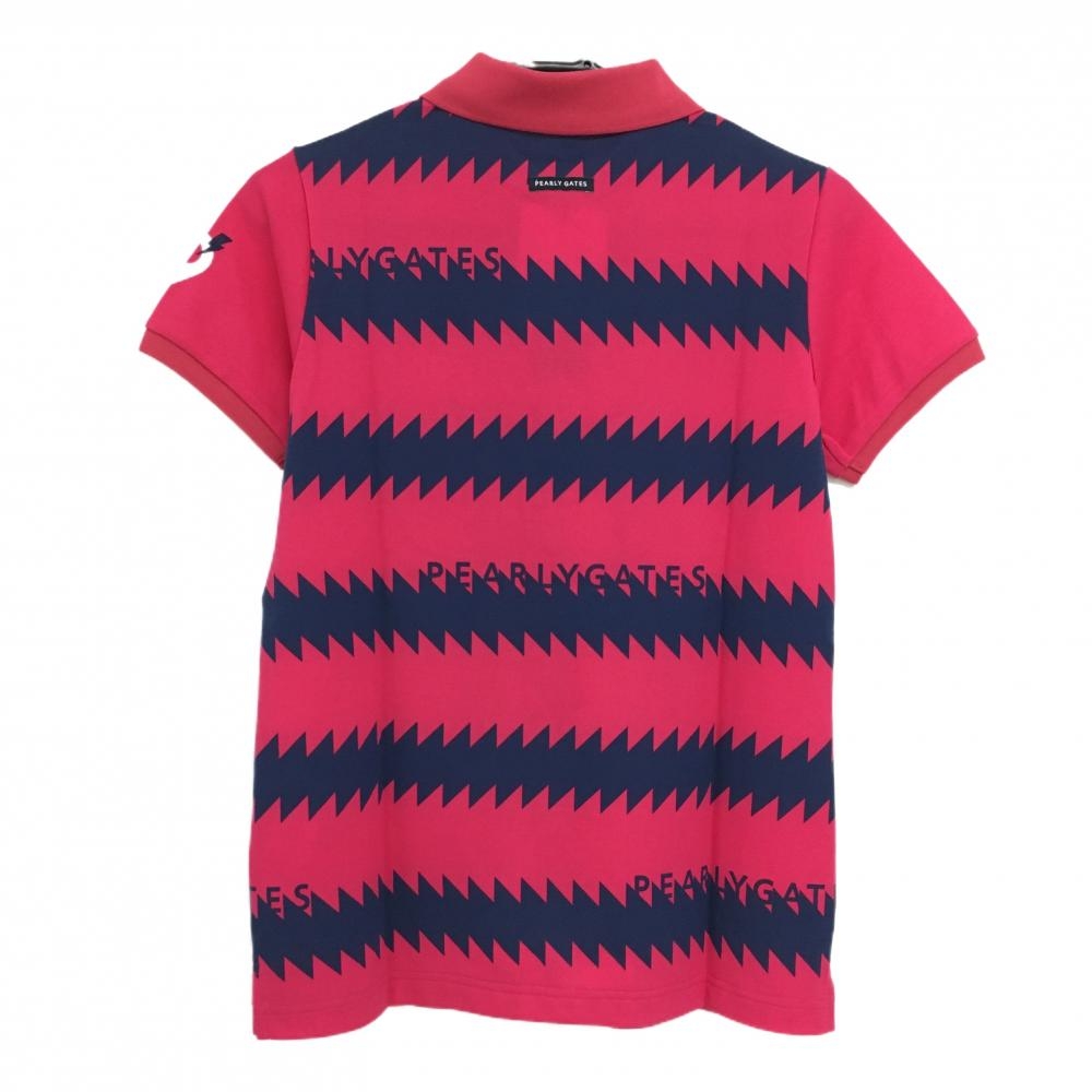 【新品】パーリーゲイツ 半袖ポロシャツ レッドピンク×ネイビー ギザギザボーダー レディース 1(M) ゴルフウェア PEARLY GATES