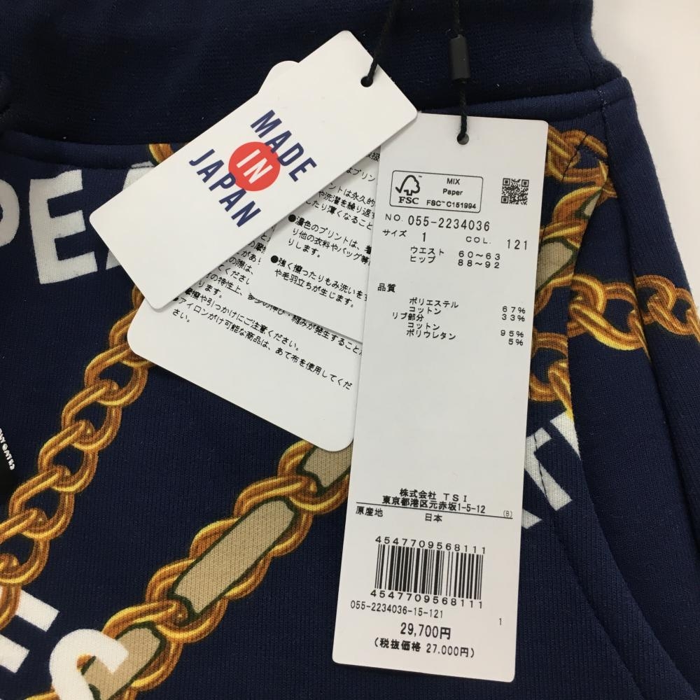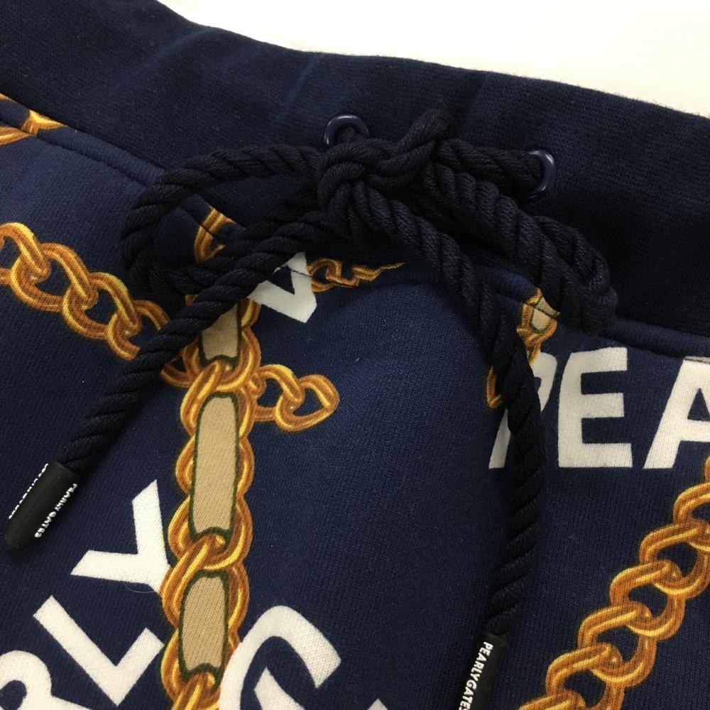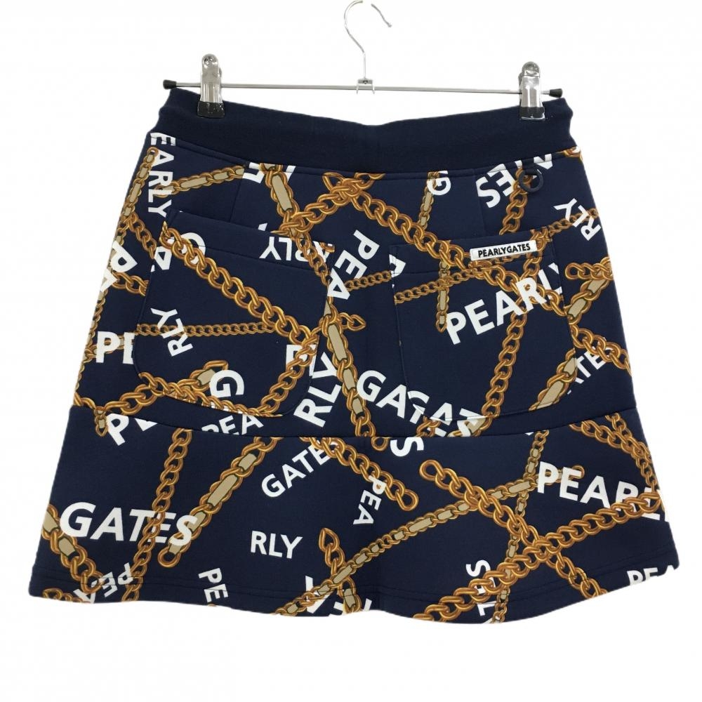 【新品】パーリーゲイツ スカート ネイビー×ゴールド チェーン柄 ウエストゴム 調節紐 レディース 1(M) ゴルフウェア PEARLY GATES