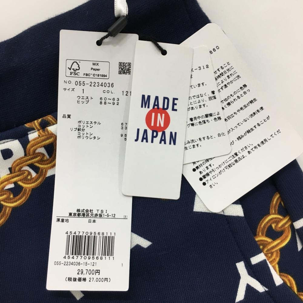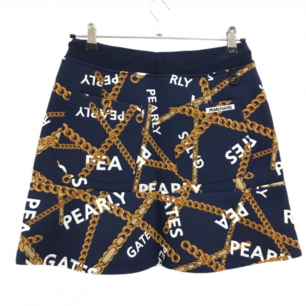 【新品】パーリーゲイツ スカート ネイビー×ゴールド チェーン柄 ウエストゴム 調節紐 レディース 1(M) ゴルフウェア PEARLY GATES