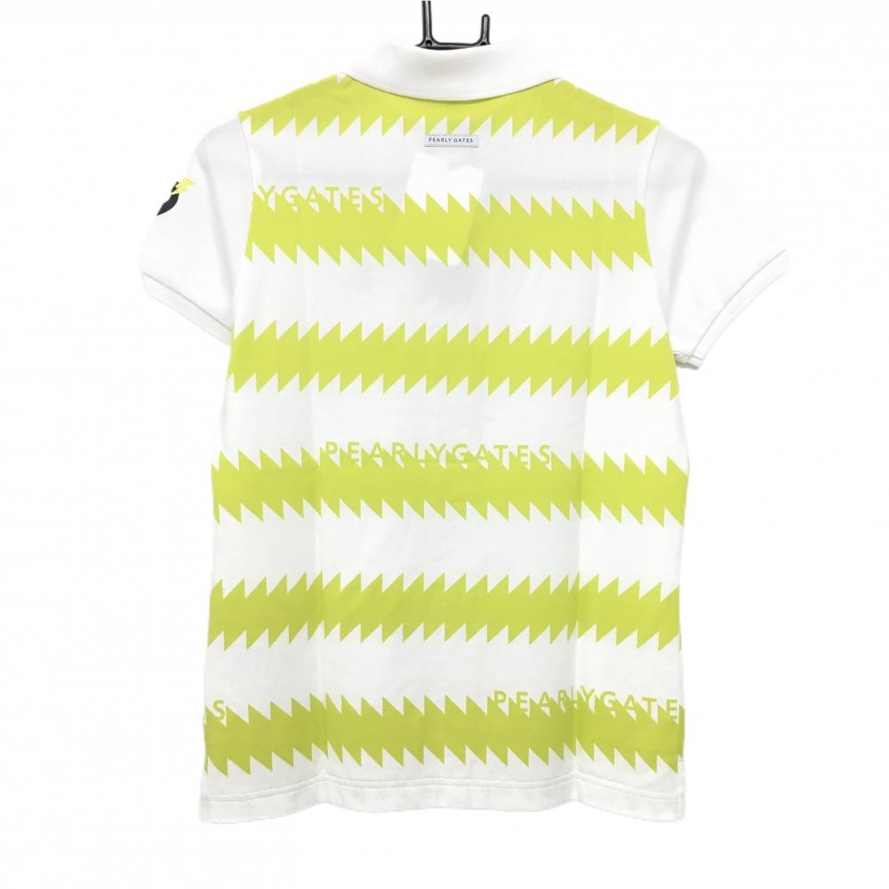 【新品】パーリーゲイツ 半袖ポロシャツ 白×イエロー ギザギザボーダー ロゴ刺しゅう レディース 0(S) ゴルフウェア PEARLY GATES