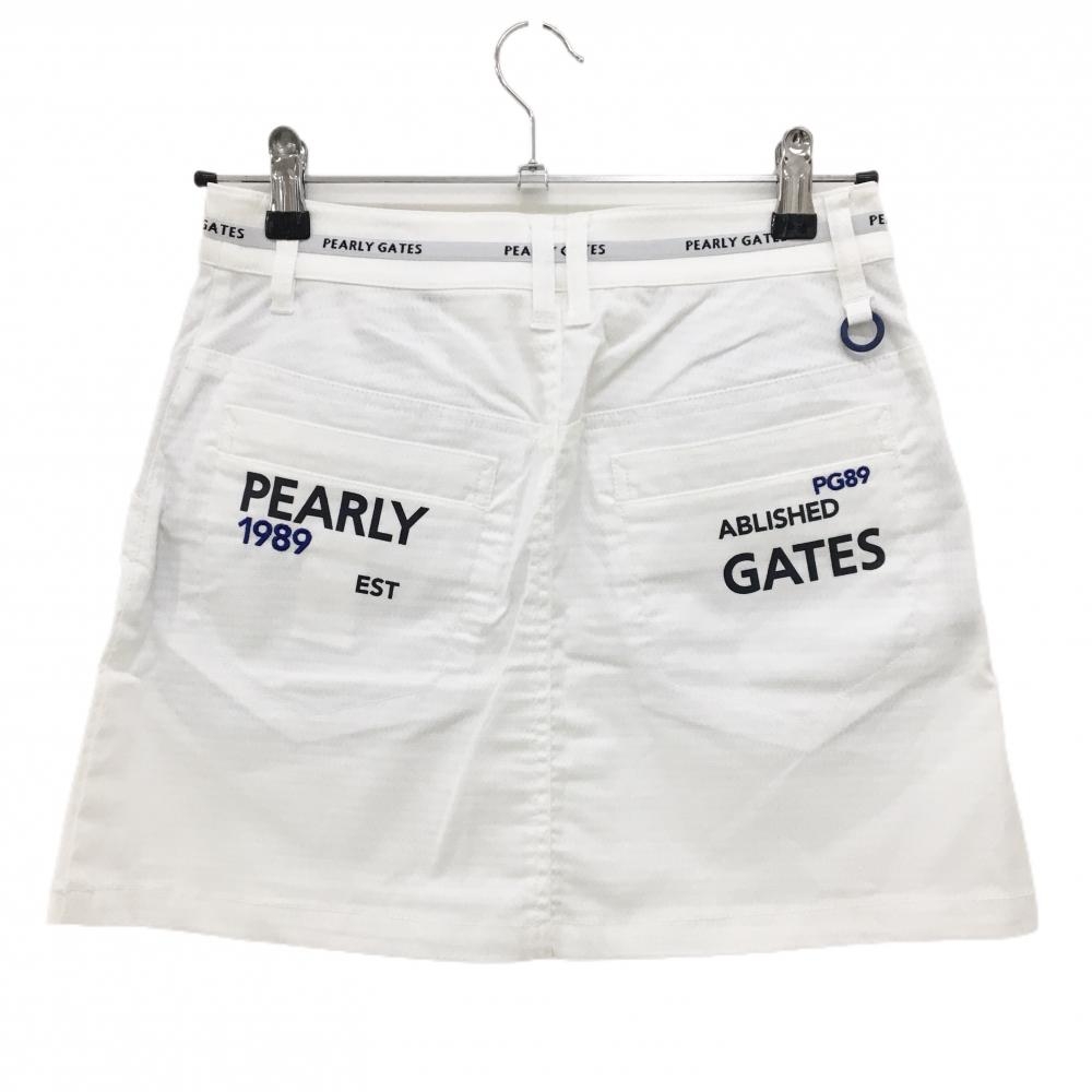 【新品】パーリーゲイツ スカート 白×グレー 織生地 ウエストロゴライン ティー付き レディース 0(S) ゴルフウェア PEARLY GATES