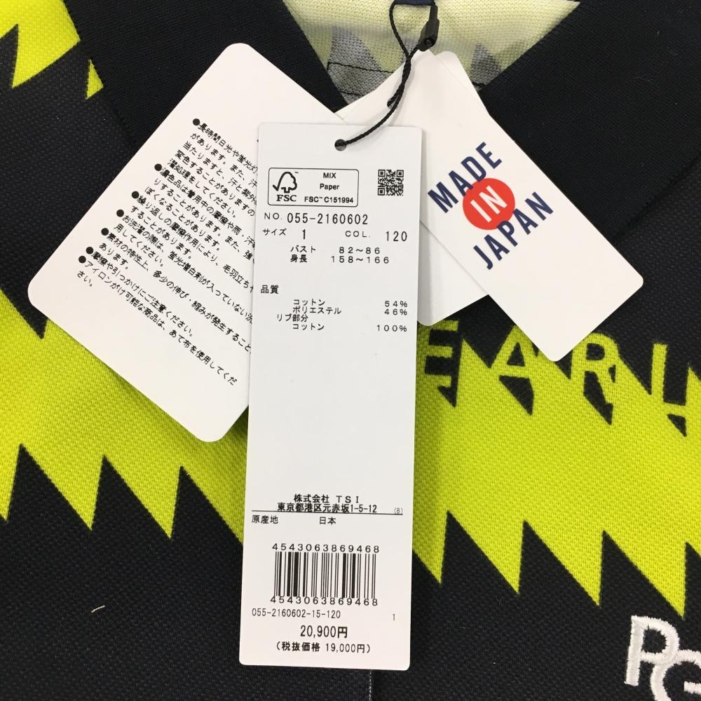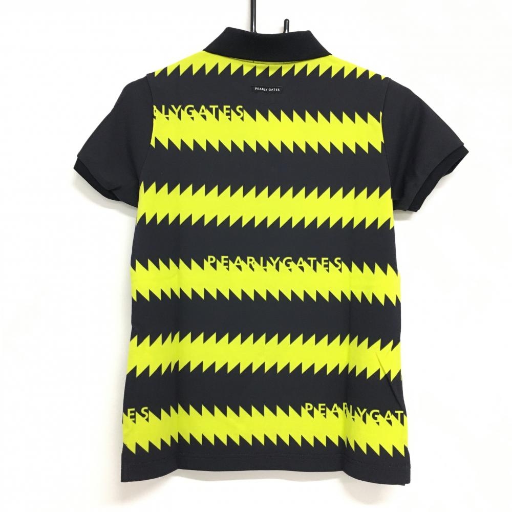【新品】パーリーゲイツ 半袖ポロシャツ ダークネイビー×イエロー ギザギザボーダー レディース 1(M) ゴルフウェア PEARLY GATES