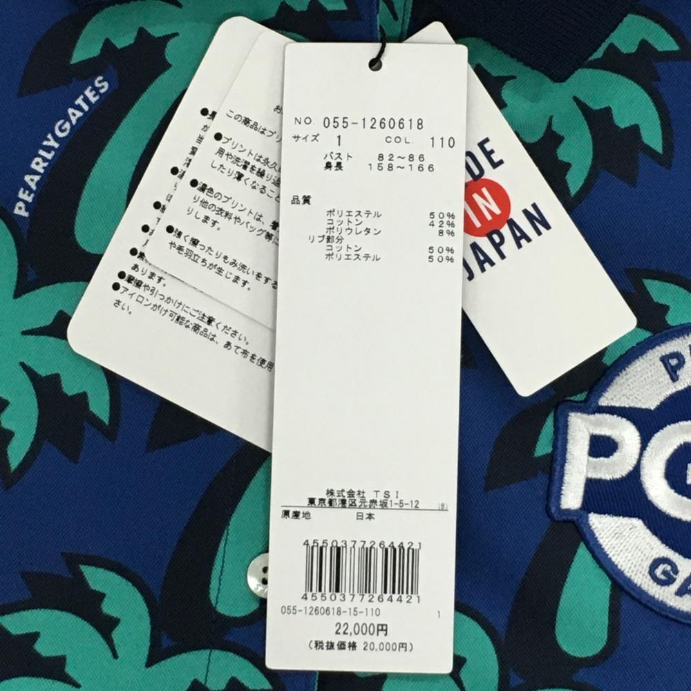 【新品】パーリーゲイツ 半袖ポロシャツ ネイビー×エメラルドグリーン ヤシの木柄 レディース 1(M) ゴルフウェア PEARLY GATES