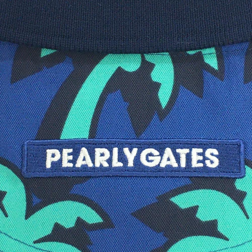 【新品】パーリーゲイツ 半袖ポロシャツ ネイビー×エメラルドグリーン ヤシの木柄 レディース 1(M) ゴルフウェア PEARLY GATES