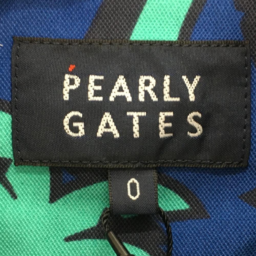 【新品】パーリーゲイツ 半袖ポロシャツ ネイビー×エメラルドグリーン ヤシの木柄 レディース 0(S) ゴルフウェア PEARLY GATES