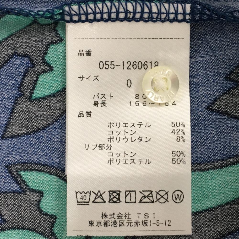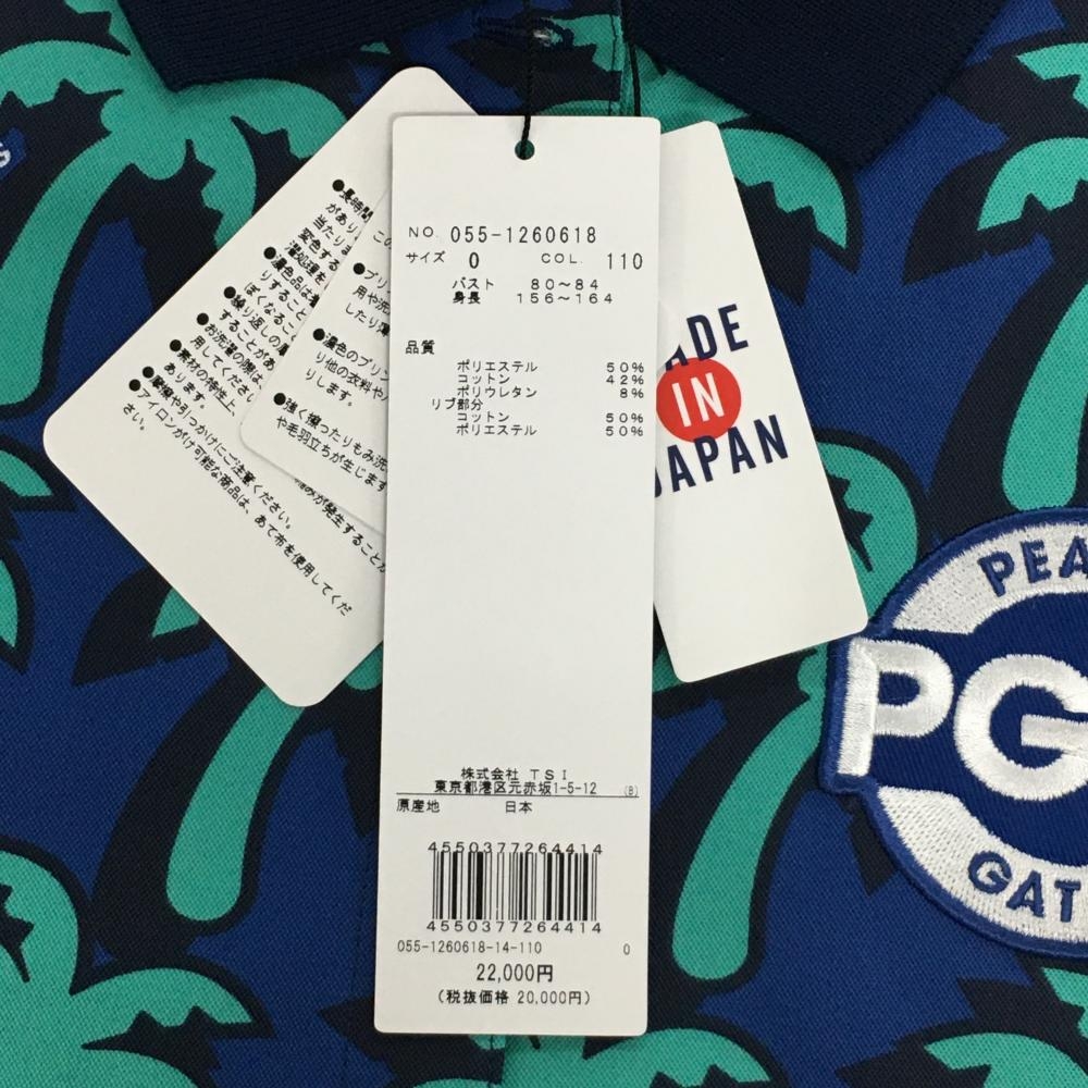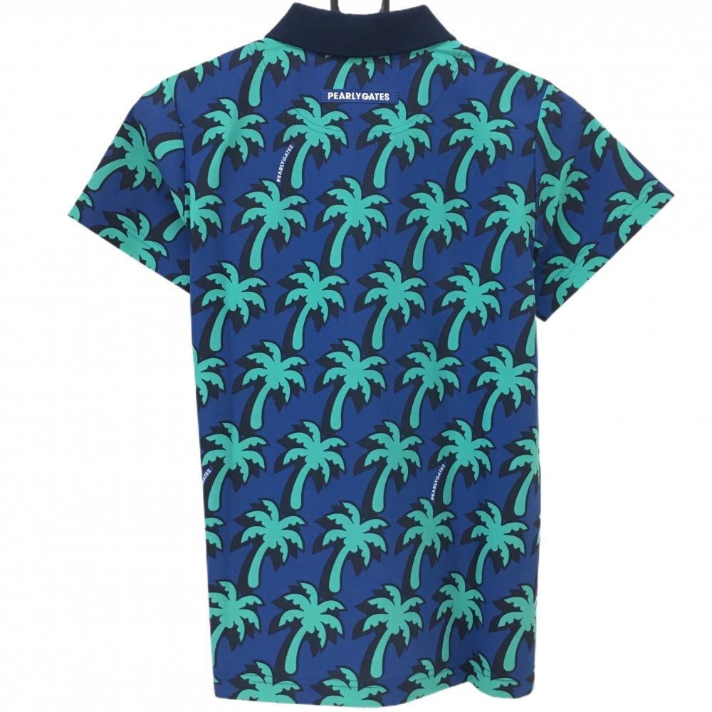 【新品】パーリーゲイツ 半袖ポロシャツ ネイビー×エメラルドグリーン ヤシの木柄 レディース 0(S) ゴルフウェア PEARLY GATES