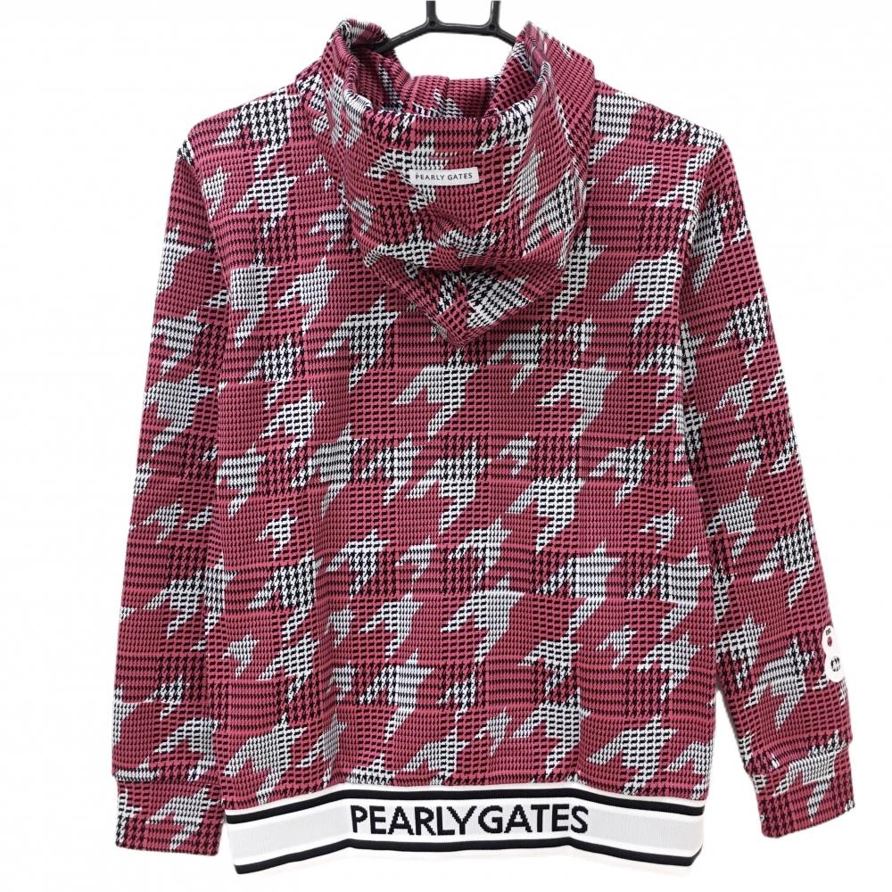 【新品】パーリーゲイツ ジップパーカー 白×ピンク 千鳥柄 後ろ裾ロゴ レディース 0(S) ゴルフウェア PEARLY GATES
