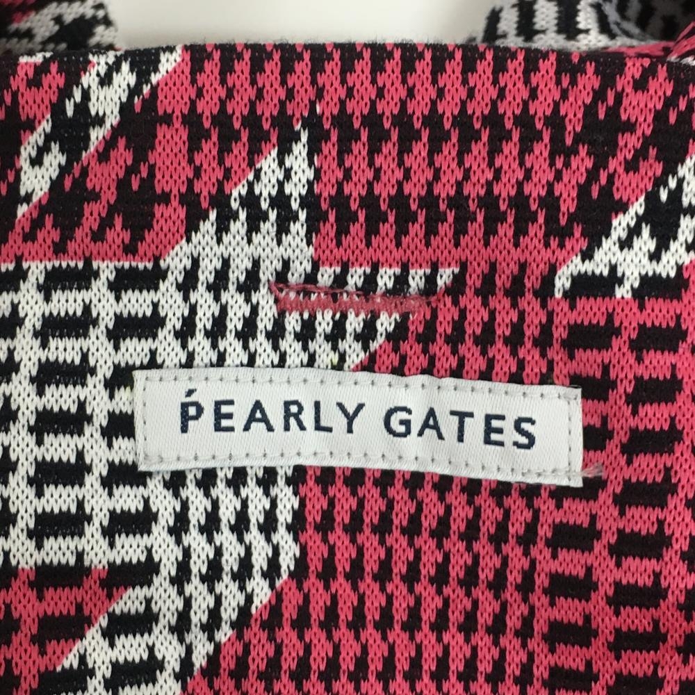 【新品】パーリーゲイツ ジップパーカー 白×ピンク 千鳥柄 後ろ裾ロゴ レディース 0(S) ゴルフウェア PEARLY GATES