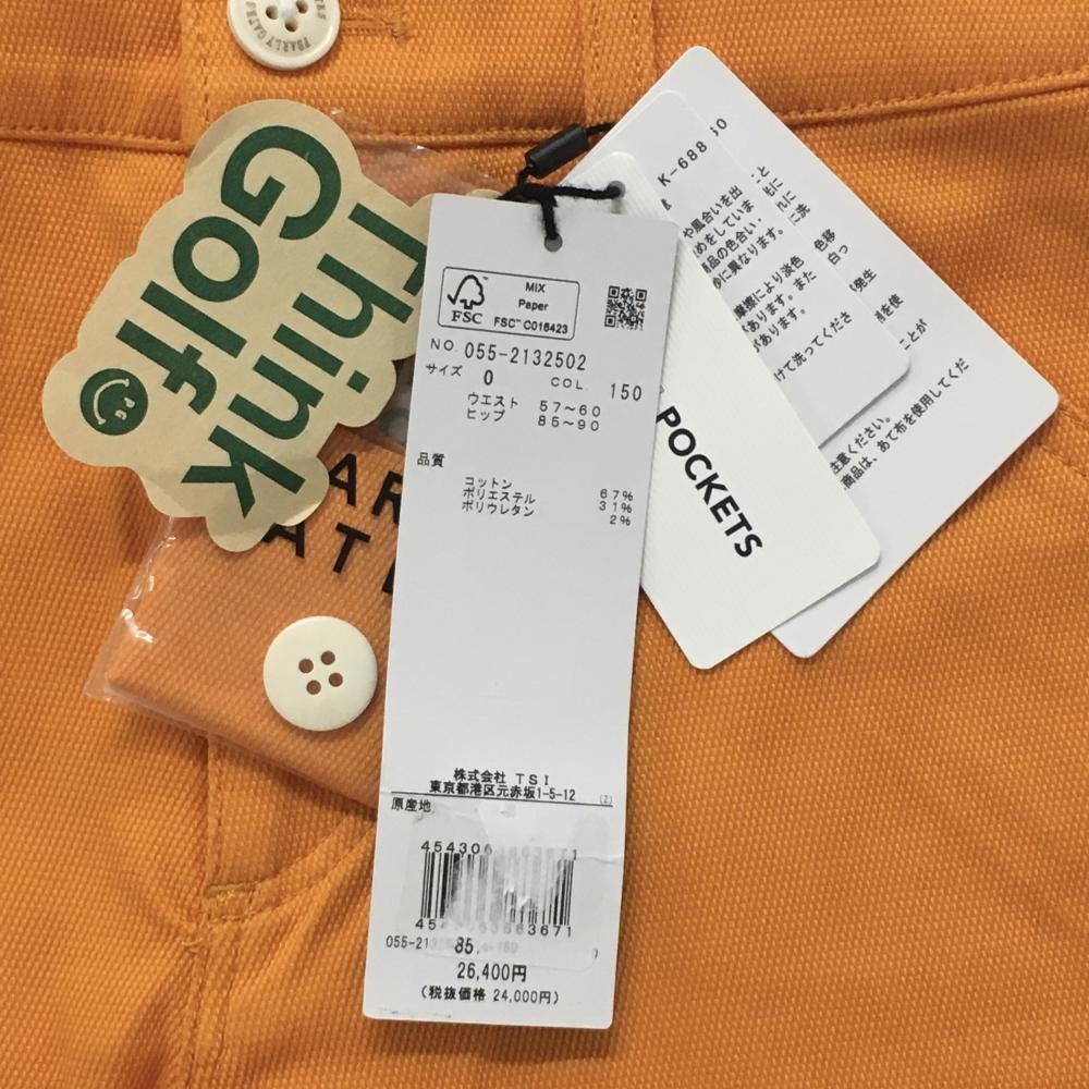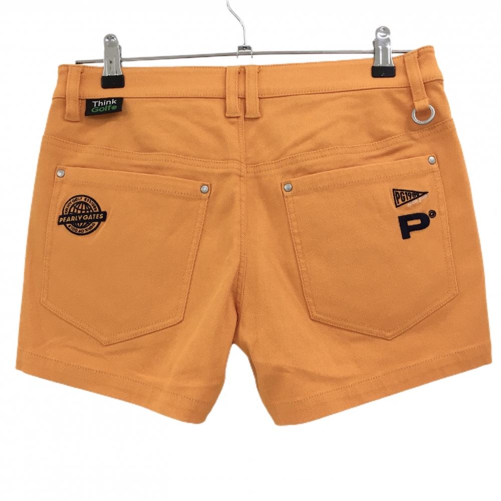 【新品】パーリーゲイツ ショートパンツ オレンジ×ネイビー ロゴ刺しゅう ストレッチ レディース 0(S) ゴルフウェア PEARLY GATES