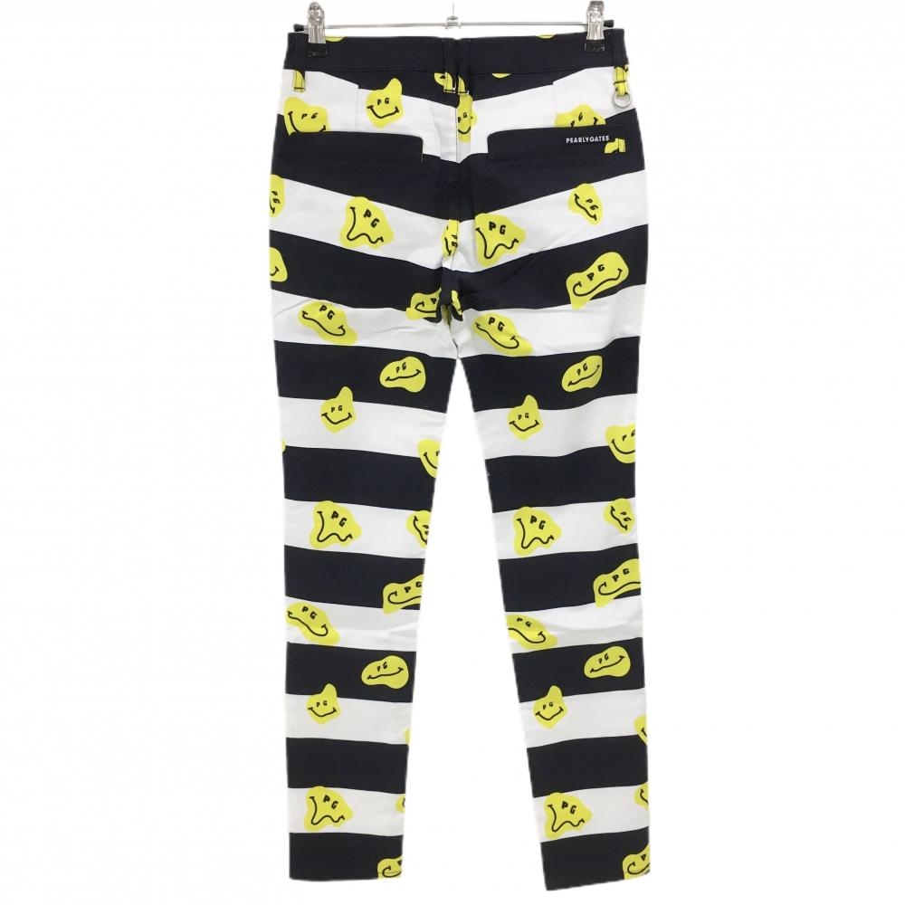 【新品】パーリーゲイツ パンツ 白×ネイビー×イエロー TOKE NIKO ボーダー ロゴ刺しゅう レディース 1(M) ゴルフウェア PEARLY GATES