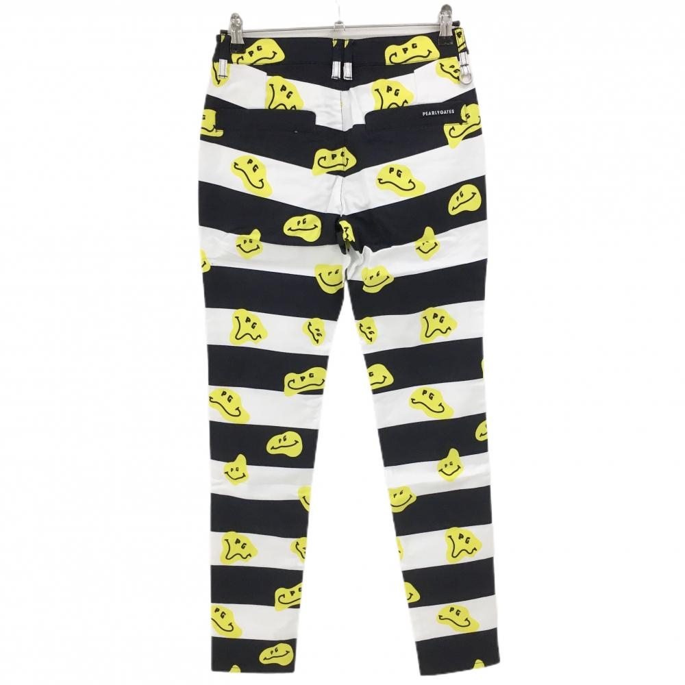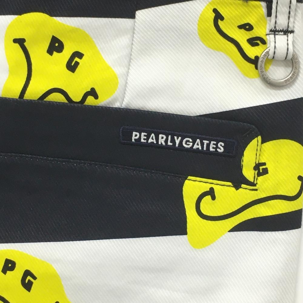 【新品】パーリーゲイツ パンツ 白×ネイビー×イエロー TOKE NIKO ボーダー ロゴ刺しゅう レディース 1(M) ゴルフウェア PEARLY GATES