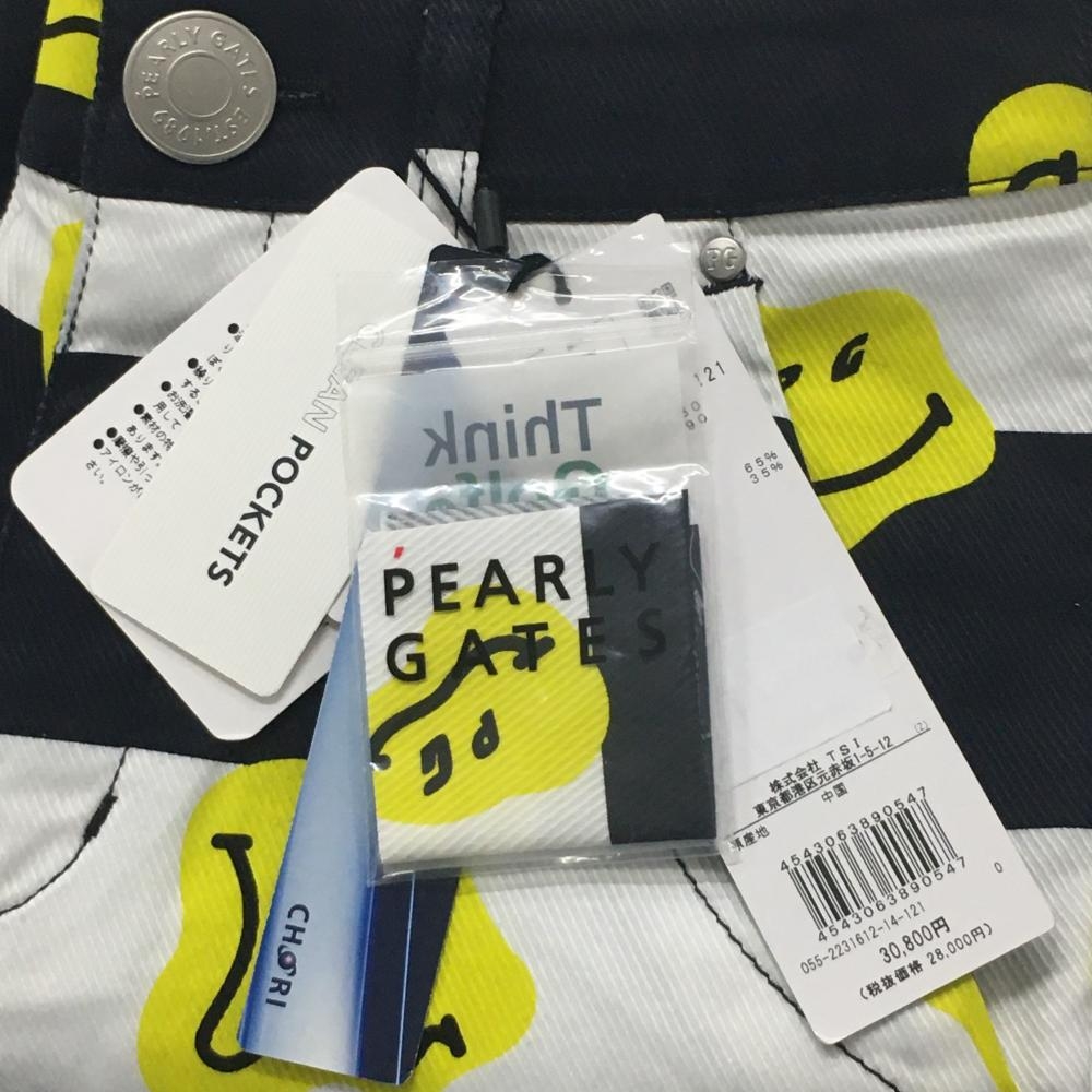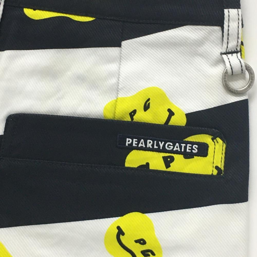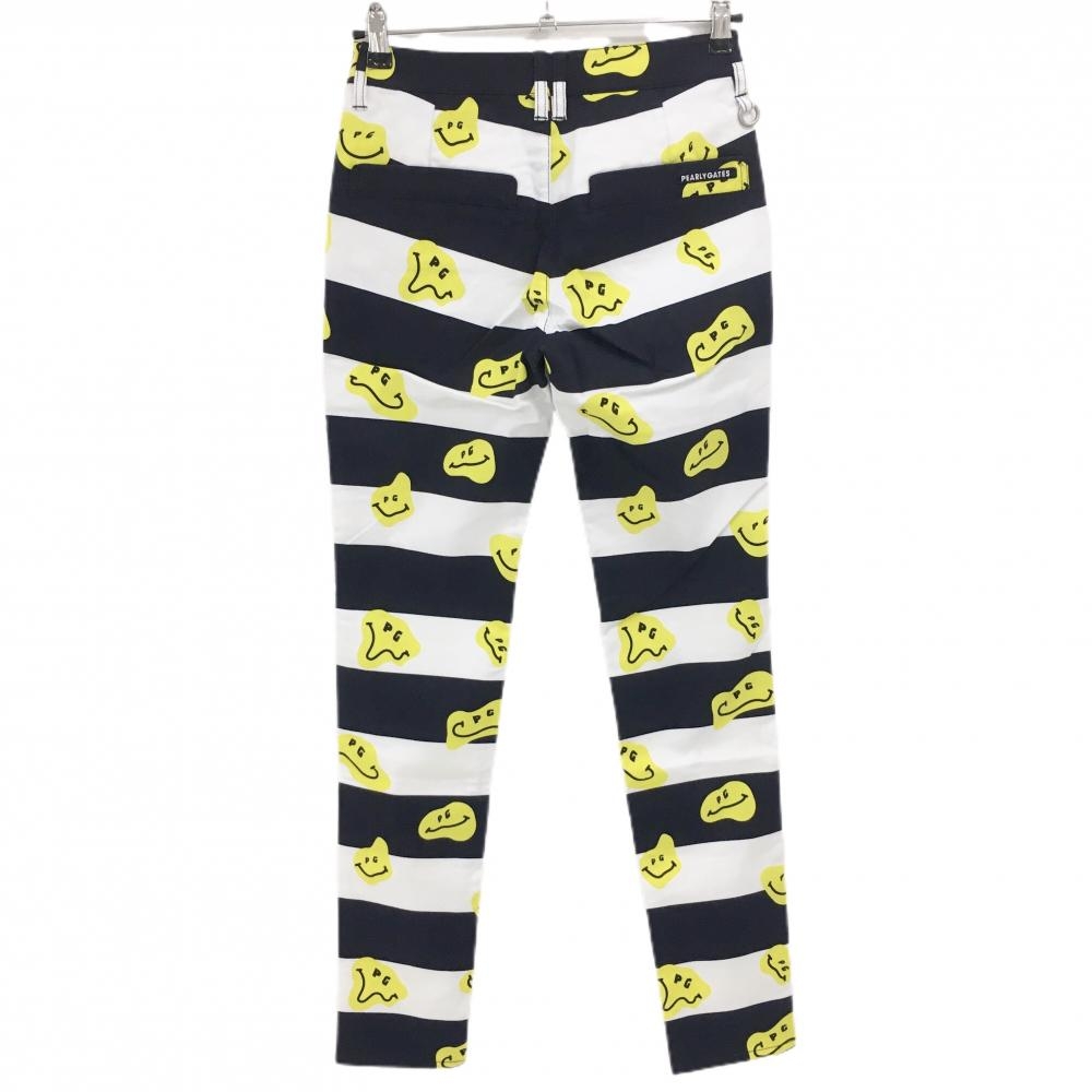 【新品】パーリーゲイツ パンツ 白×ネイビー×イエロー TOKE NIKO ボーダー ロゴ刺しゅう レディース 0(S) ゴルフウェア PEARLY GATES