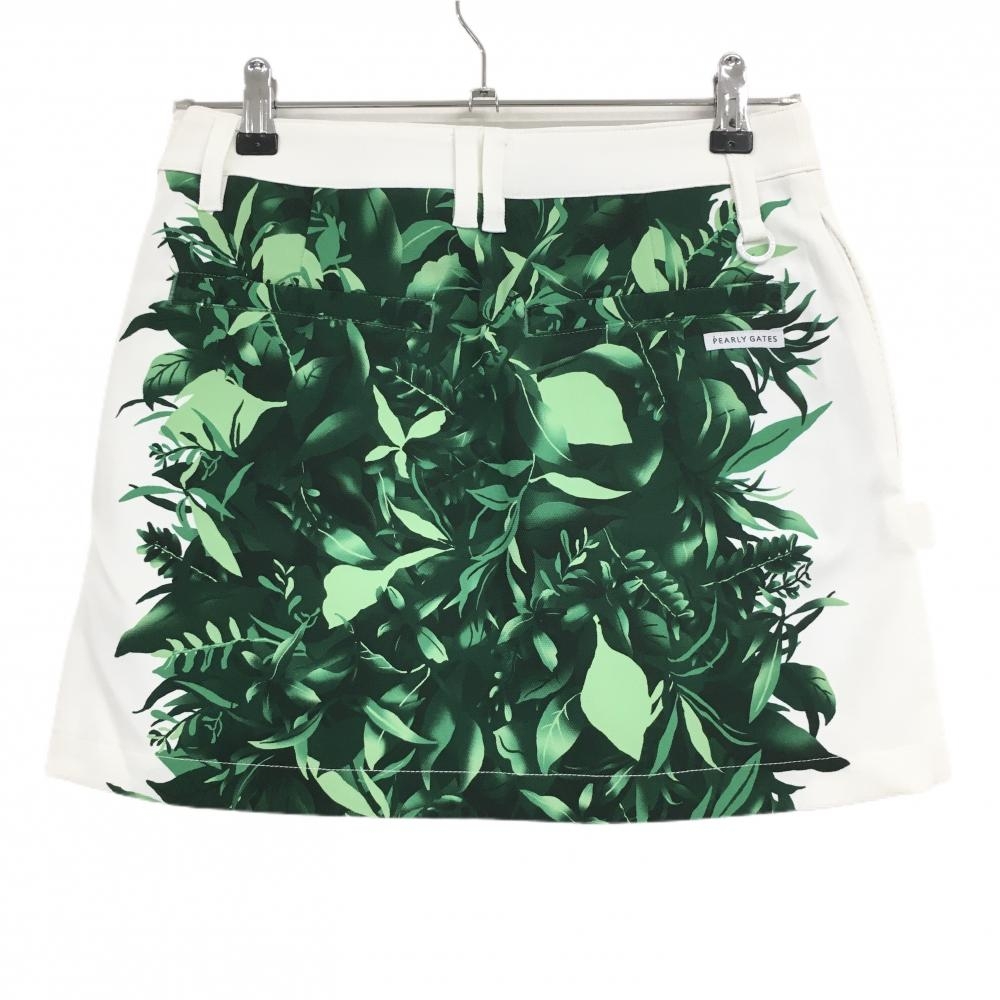 【新品】パーリーゲイツ スカート 白×グリーン リーフ柄 サイドファスナー レディース 1(M) ゴルフウェア PEARLY GATES