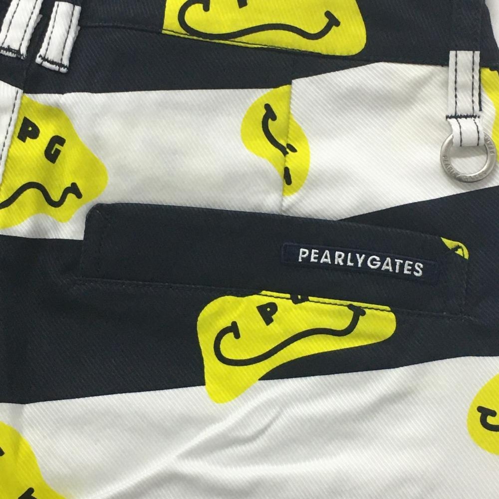【新品】パーリーゲイツ パンツ 白×ネイビー×イエロー TOKE NIKO ボーダー ロゴ刺しゅう レディース 0(S) ゴルフウェア PEARLY GATES