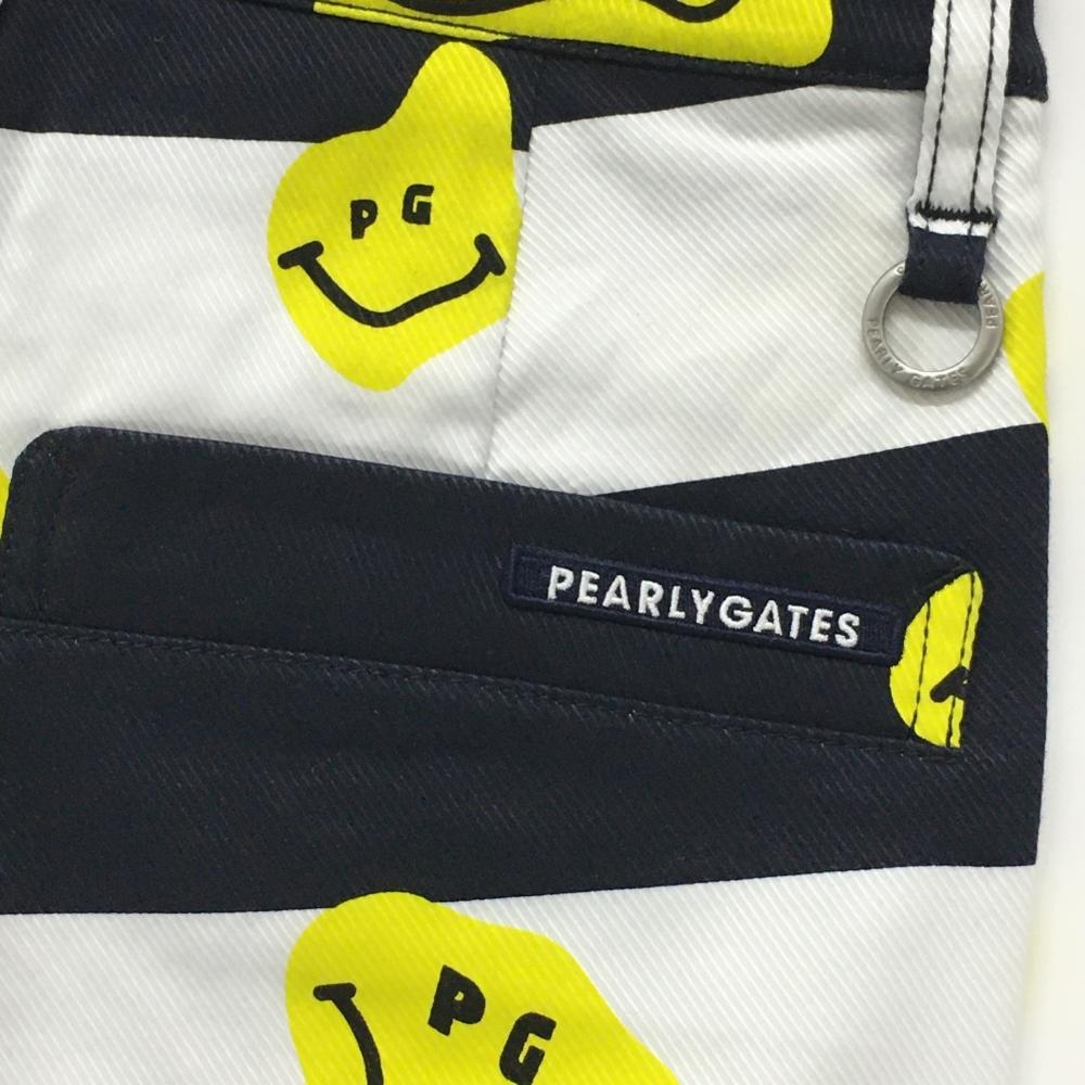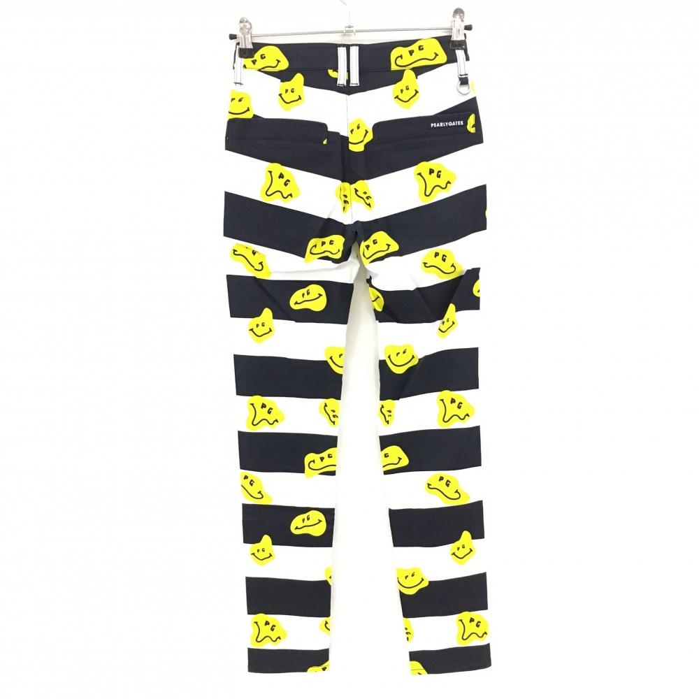 【新品】パーリーゲイツ パンツ 白×ネイビー×イエロー TOKE NIKO ボーダー ロゴ刺しゅう レディース 00(XS) ゴルフウェア PEARLY GATES