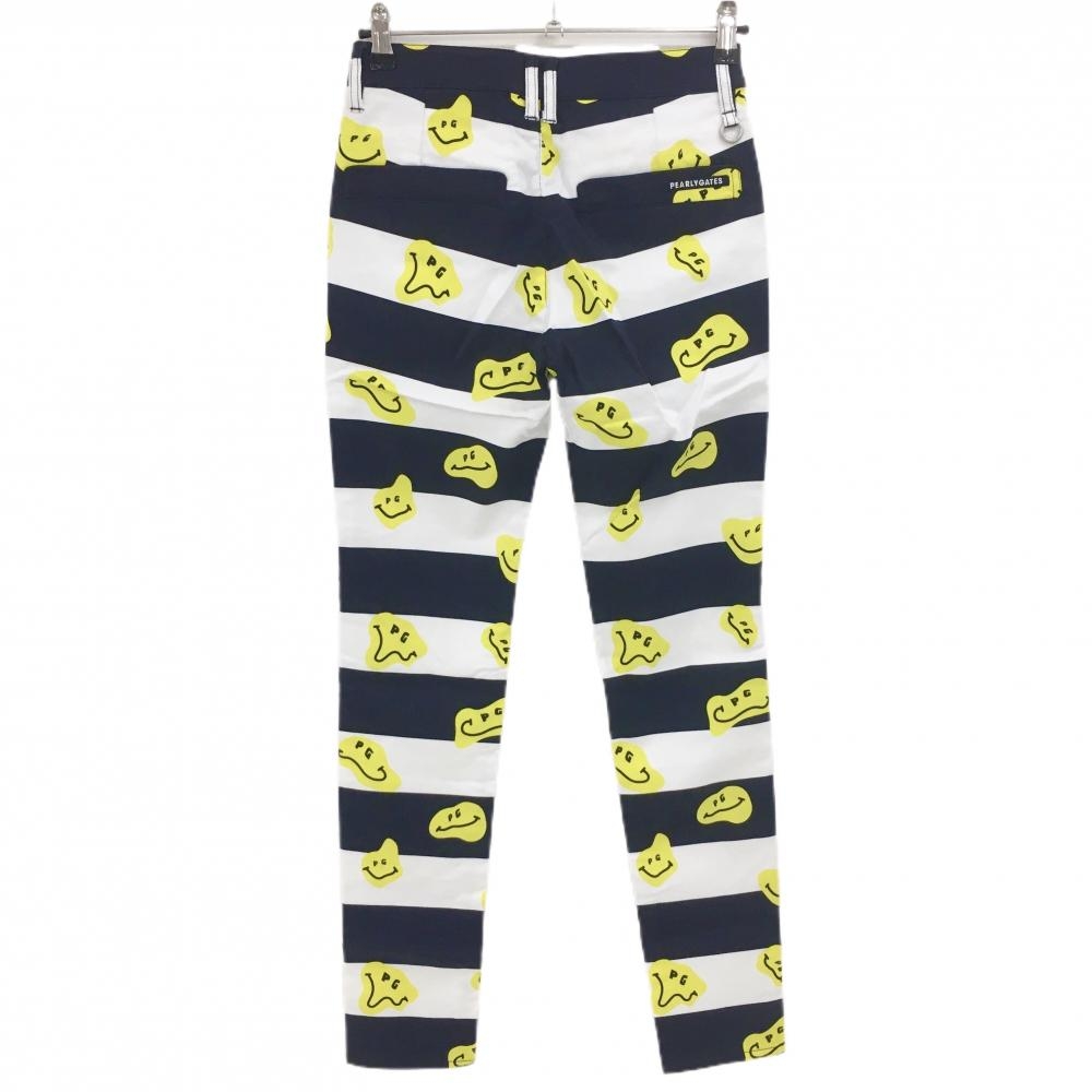 【新品】パーリーゲイツ パンツ 白×ネイビー×イエロー TOKE NIKO ボーダー ロゴ刺しゅう レディース 0(S) ゴルフウェア PEARLY GATES