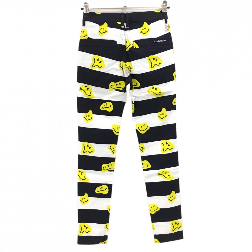 【新品】パーリーゲイツ パンツ 白×ネイビー×イエロー TOKE NIKO ボーダー ロゴ刺しゅう レディース 00(XS) ゴルフウェア PEARLY GATES