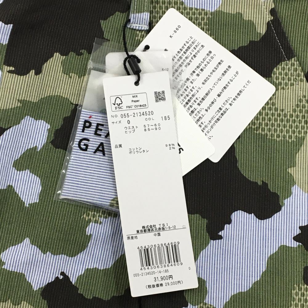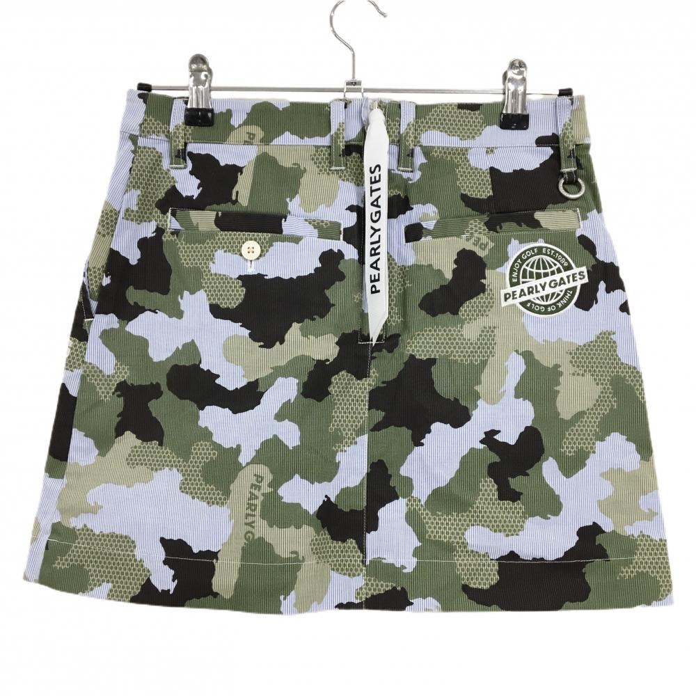 【新品】パーリーゲイツ スカート ブルー×白×カーキ カモフラ調 迷彩 ストライプ レディース 0(S) ゴルフウェア PEARLY GATES