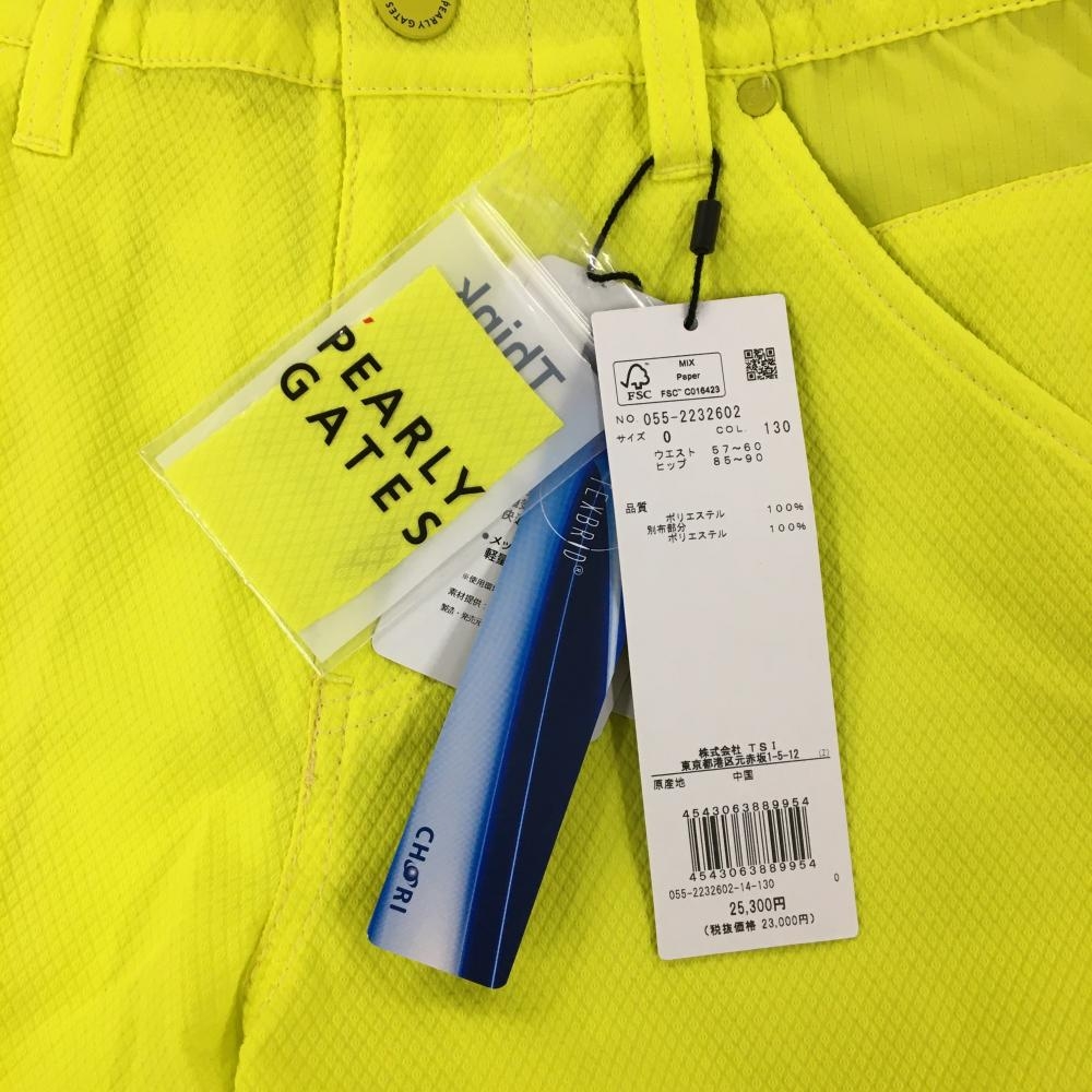 【新品】パーリーゲイツ ショートパンツ イエロー×ネイビー ダイヤ柄織生地 サイドロゴ レディース 0(S) ゴルフウェア PEARLY GATES