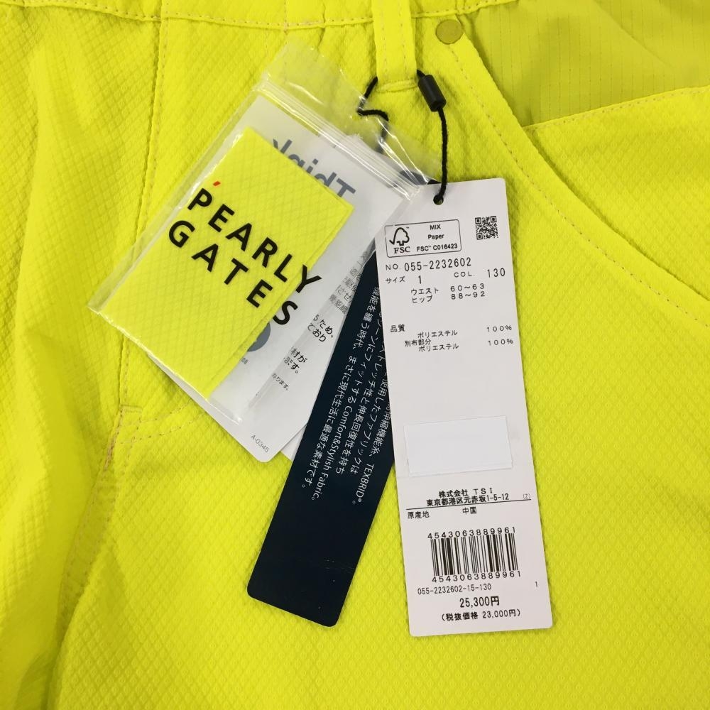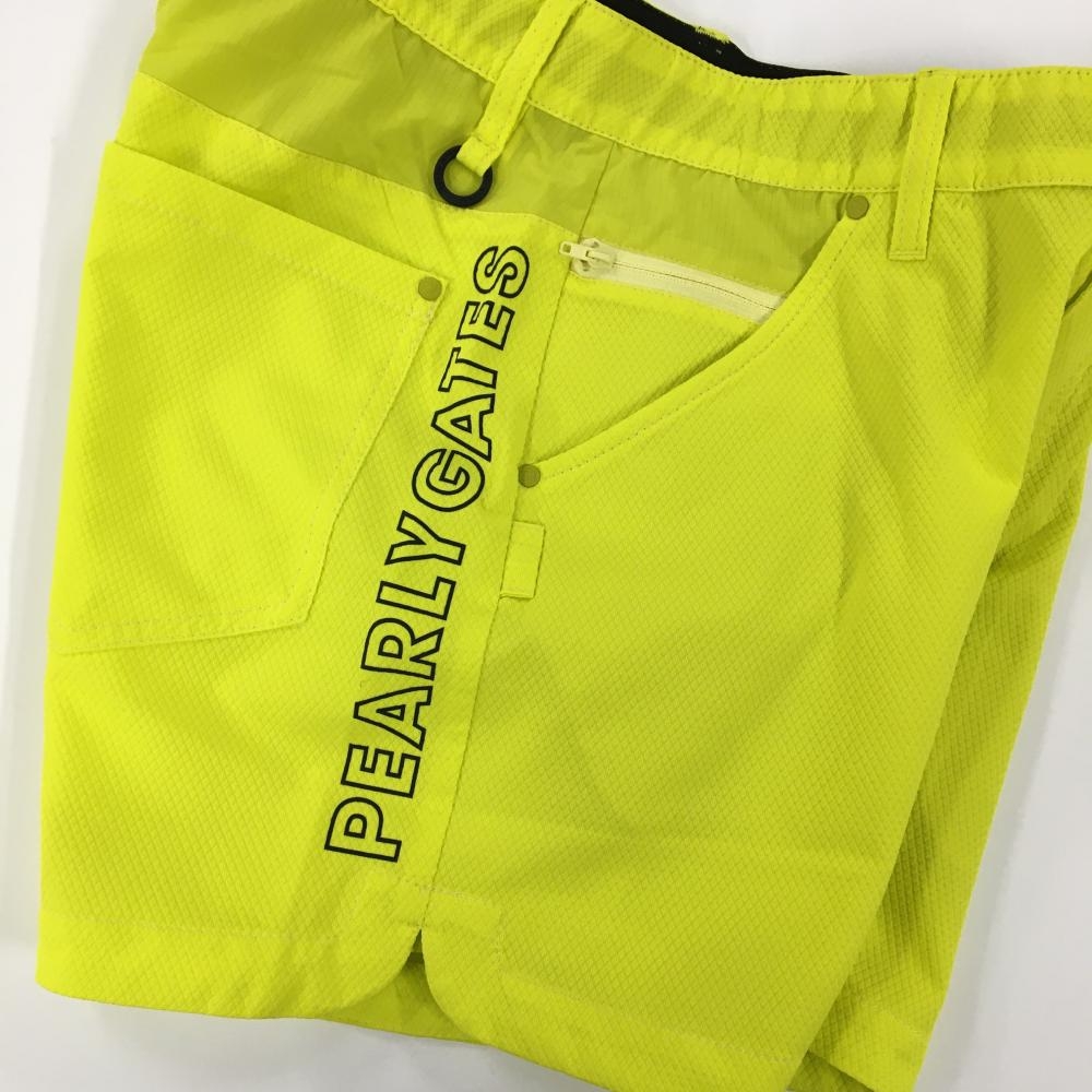 【新品】パーリーゲイツ ショートパンツ イエロー×ネイビー ダイヤ柄織生地 サイドロゴ レディース 1(M) ゴルフウェア PEARLY GATES