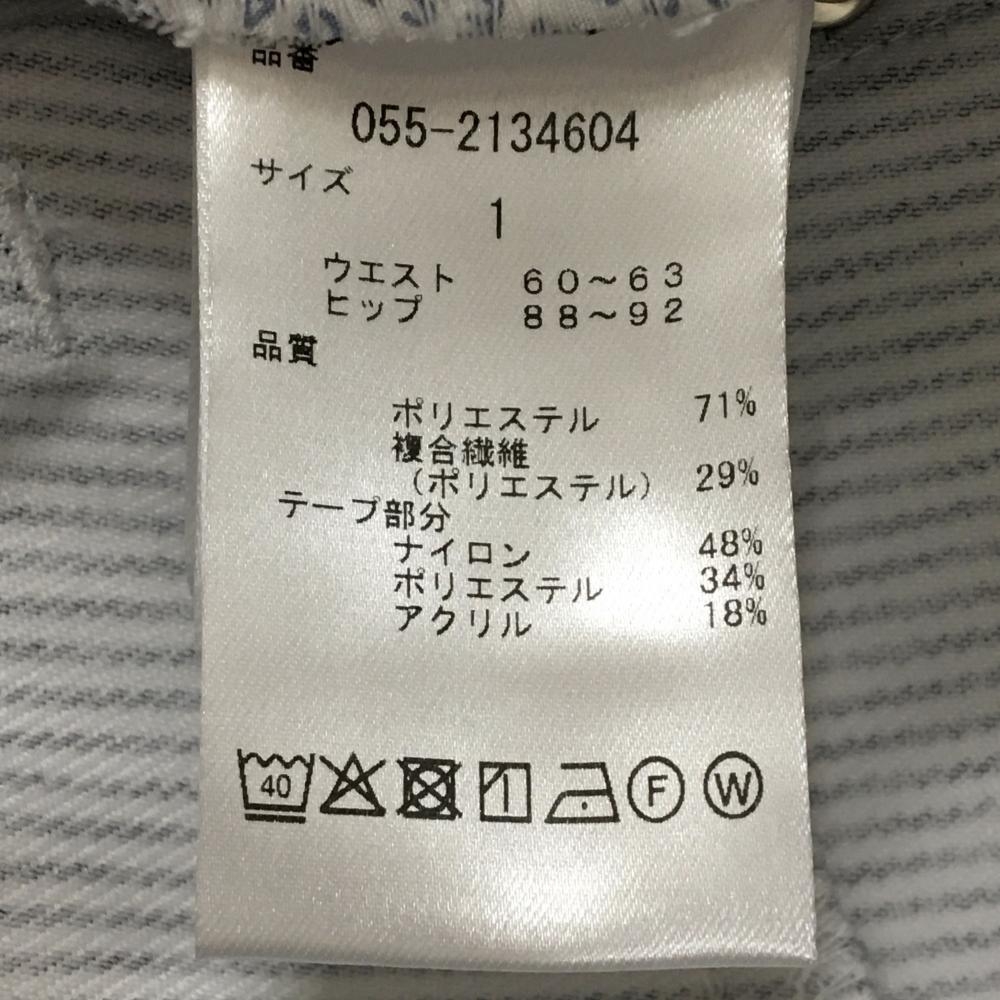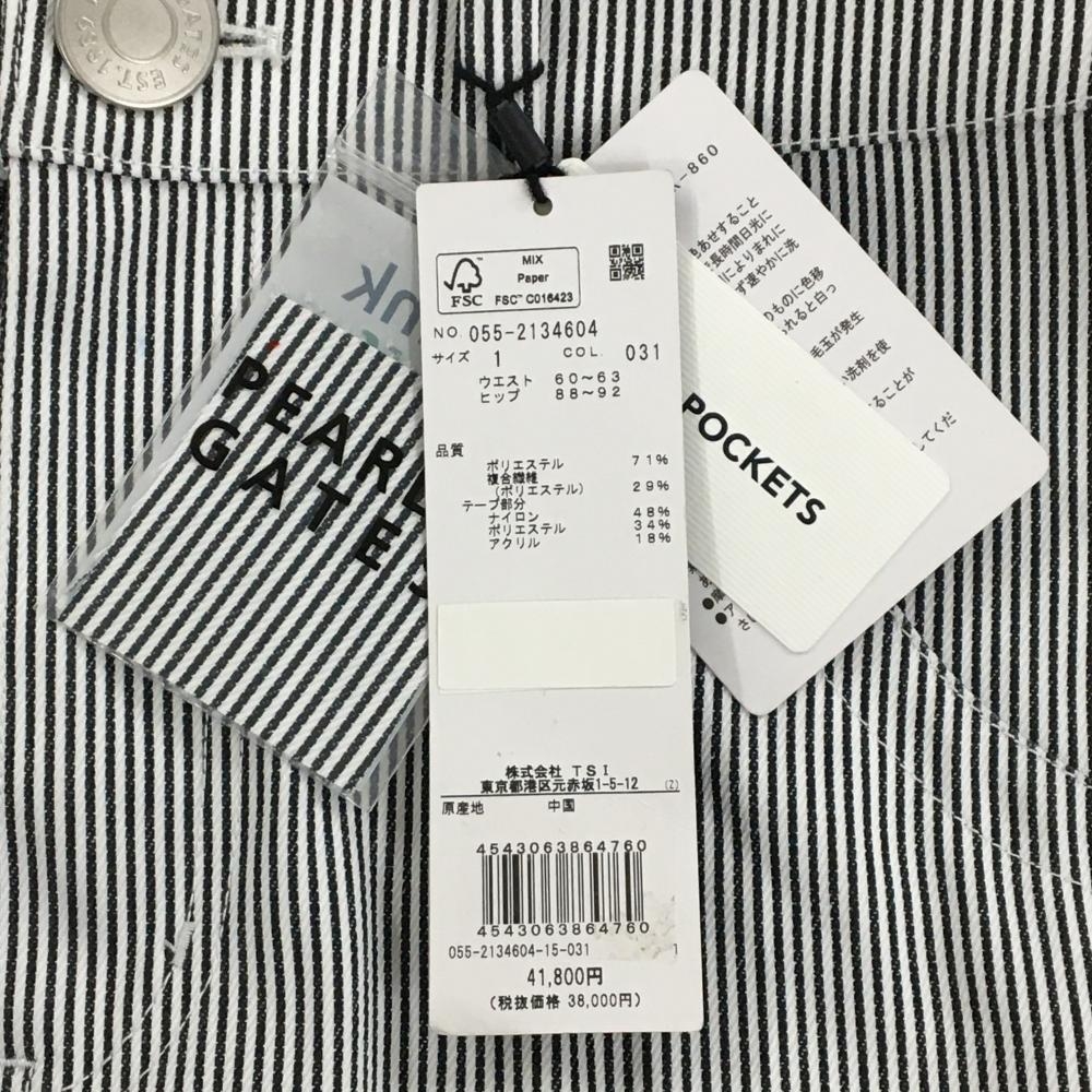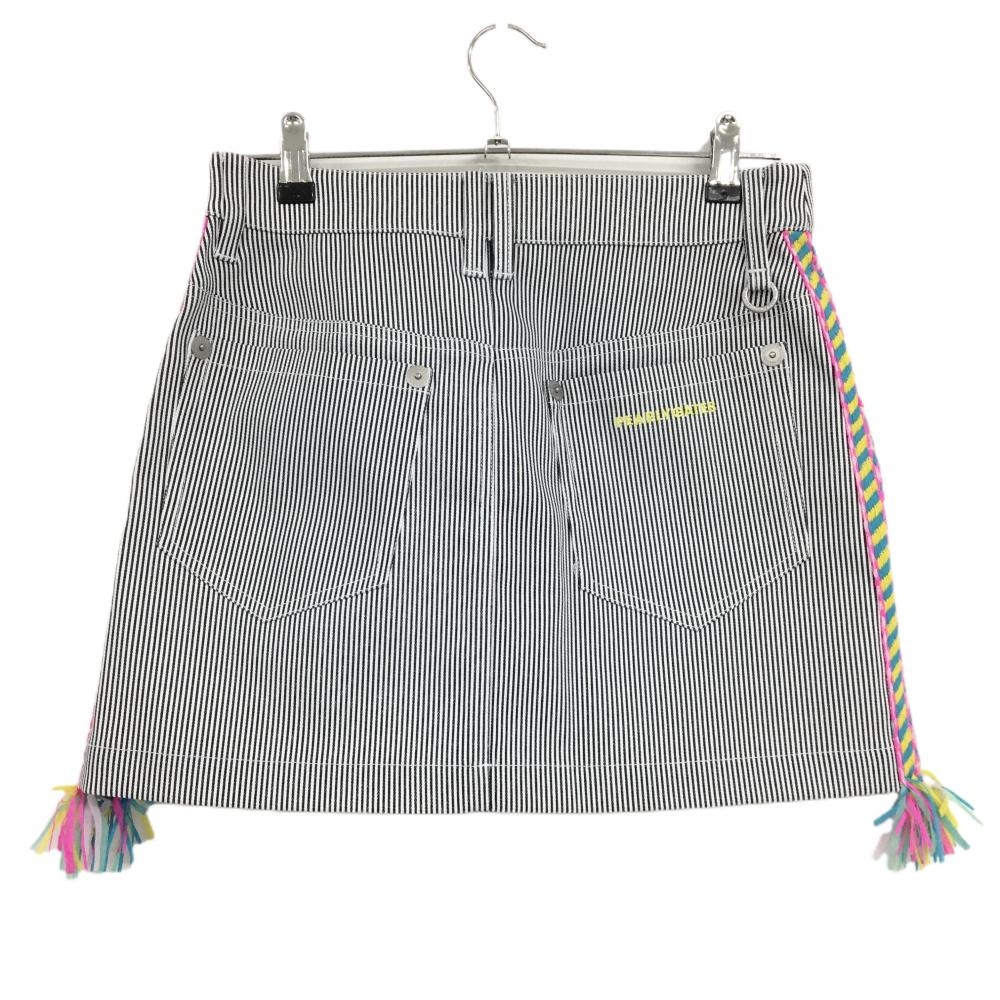 【新品】パーリーゲイツ スカート 白×ネイビー ストライプ サイド異素材 フリンジ レディース 1(M) ゴルフウェア PEARLY GATES