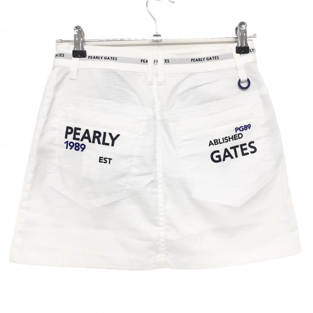 【新品】パーリーゲイツ スカート 白×グレー 織生地 ウエストロゴライン ティー装着 レディース 0(S) ゴルフウェア PEARLY GATES