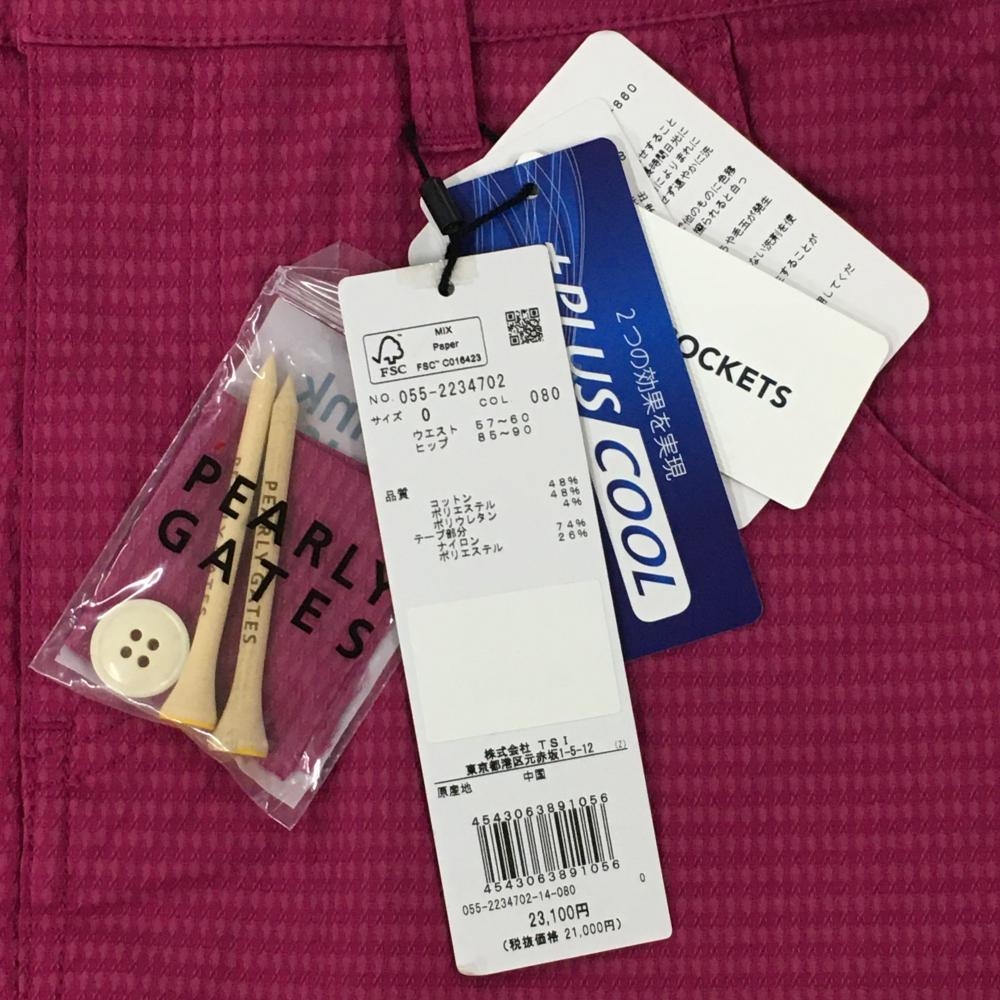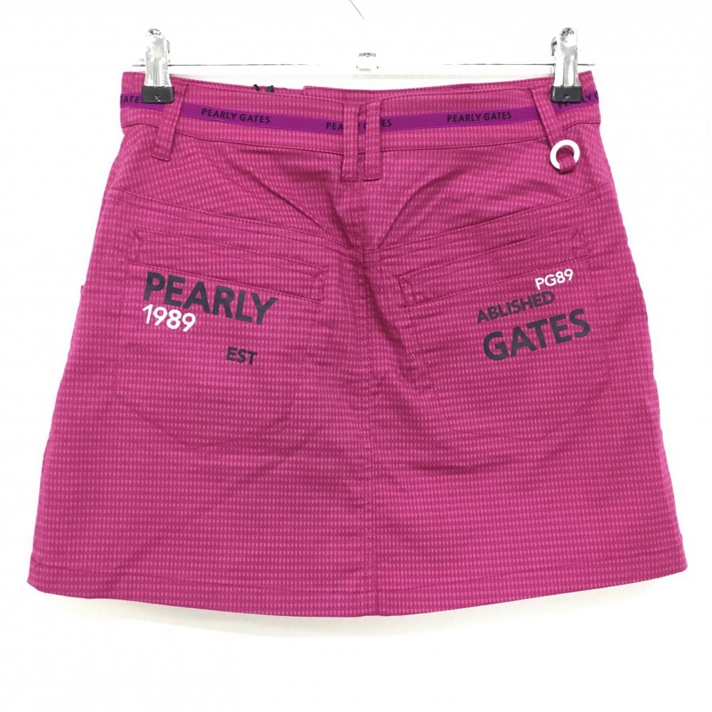 【新品】パーリーゲイツ スカート パープルピンク 総柄織生地 ウエストロゴライン ティー付き レディース 0(S) ゴルフウェア PEARLY GATES