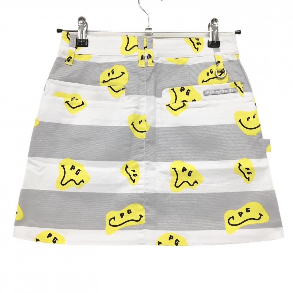 【新品】パーリーゲイツ スカート 白×グレー×イエロー TOKE NIKO ボーダー ロゴ刺しゅう レディース 00(XS) ゴルフウェア PEARLY GATES