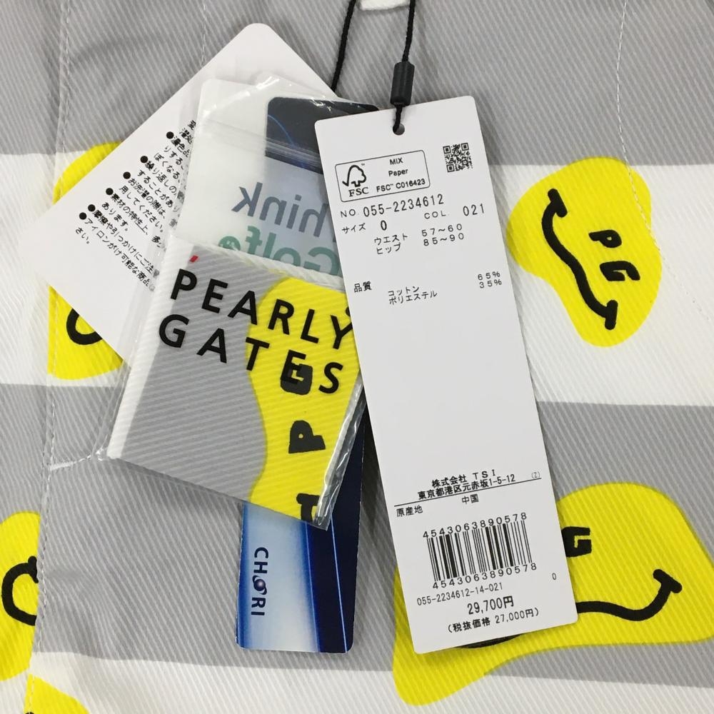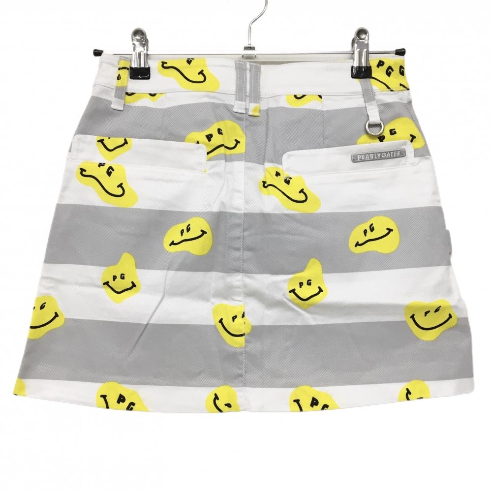 【新品】パーリーゲイツ スカート 白×グレー×イエロー TOKE NIKO ボーダー ロゴ刺しゅう レディース 0(S) ゴルフウェア PEARLY GATES