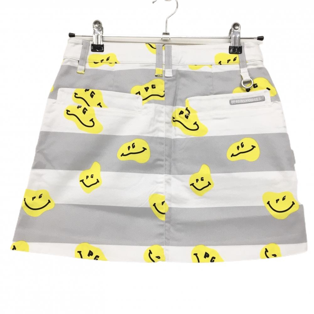 【新品】パーリーゲイツ スカート 白×グレー×イエロー TOKE NIKO ボーダー ロゴ刺しゅう レディース 0(S) ゴルフウェア PEARLY GATES