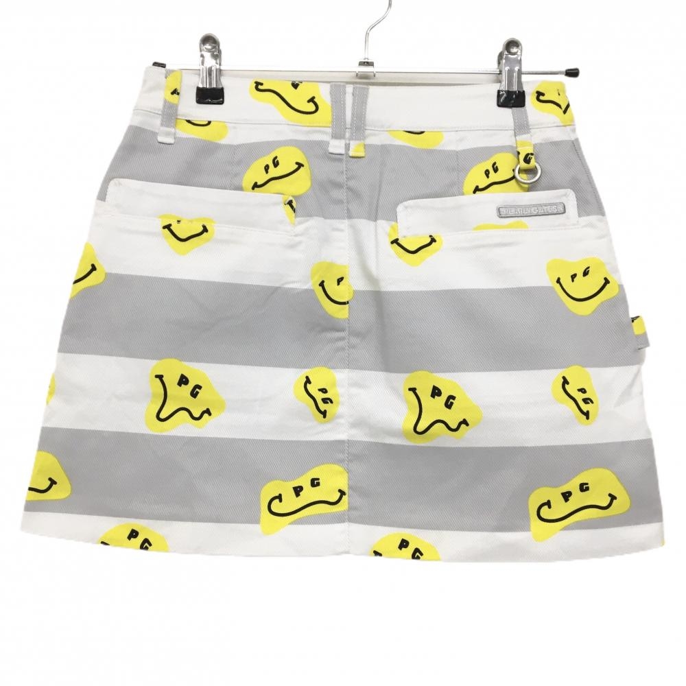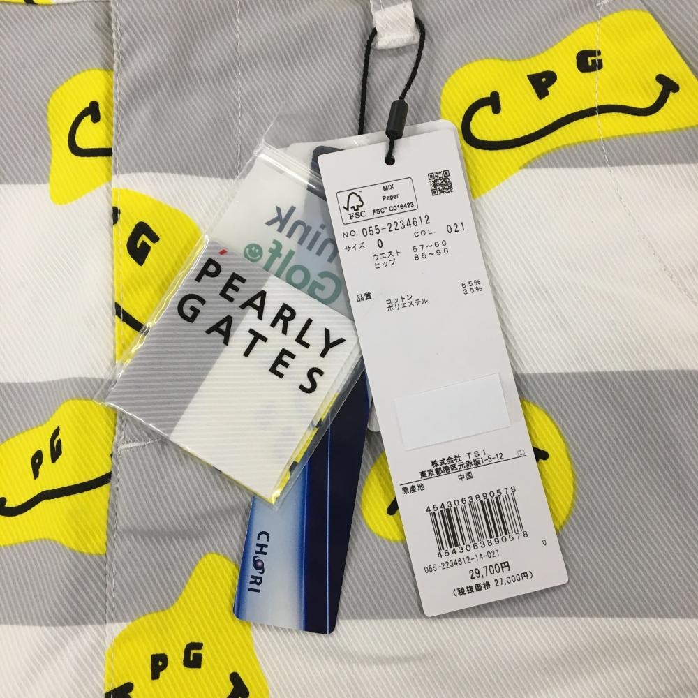 【新品】パーリーゲイツ スカート 白×グレー×イエロー TOKE NIKO ボーダー ロゴ刺しゅう レディース 0(S) ゴルフウェア PEARLY GATES
