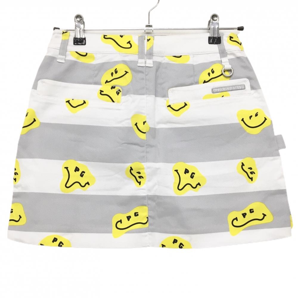 【新品】パーリーゲイツ スカート 白×グレー×イエロー TOKE NIKO ボーダー ロゴ刺しゅう レディース 0(S) ゴルフウェア PEARLY GATES