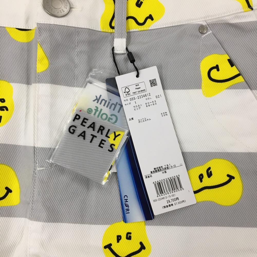 【新品】パーリーゲイツ スカート 白×グレー×イエロー TOKE NIKO ボーダー ロゴ刺しゅう レディース 1(M) ゴルフウェア PEARLY GATES