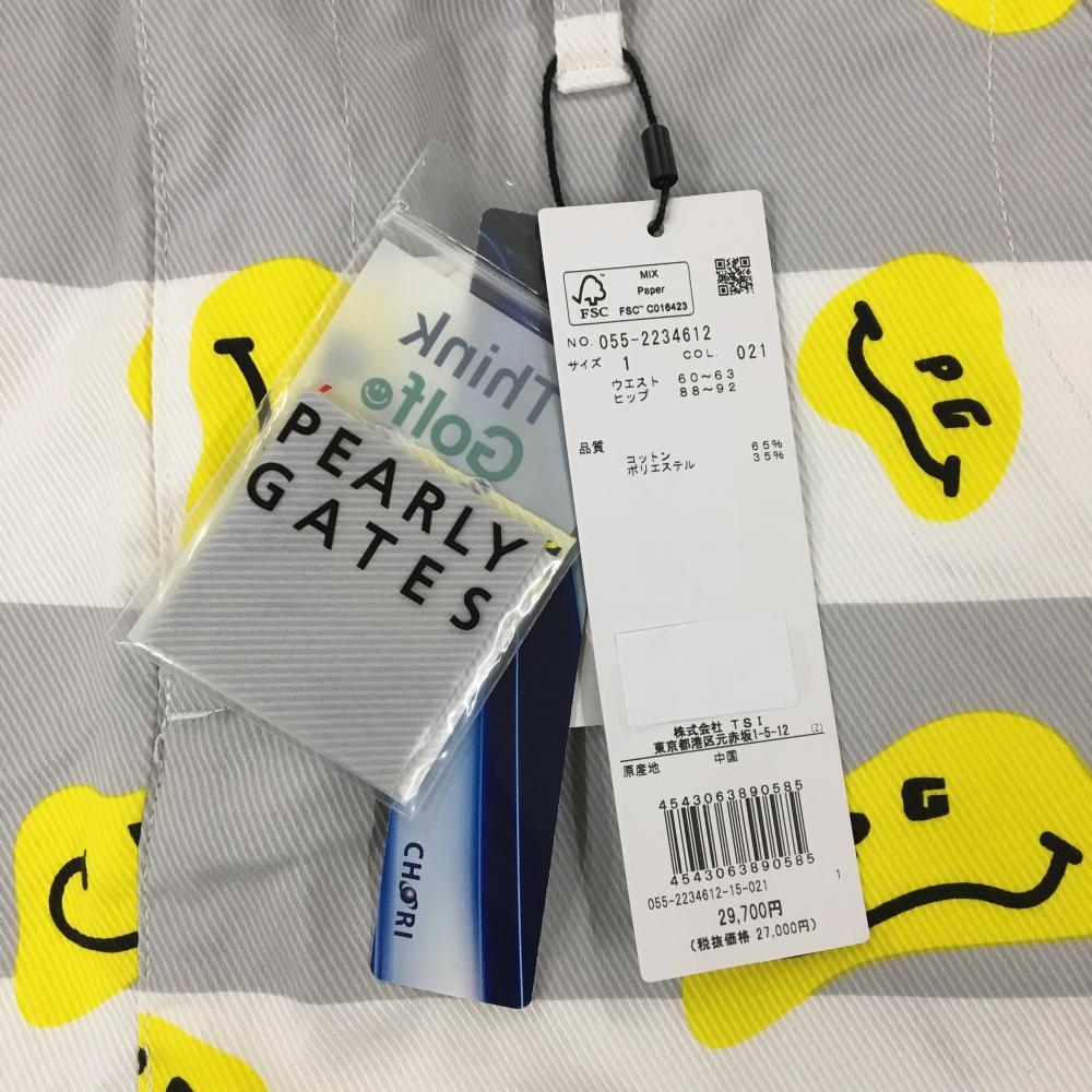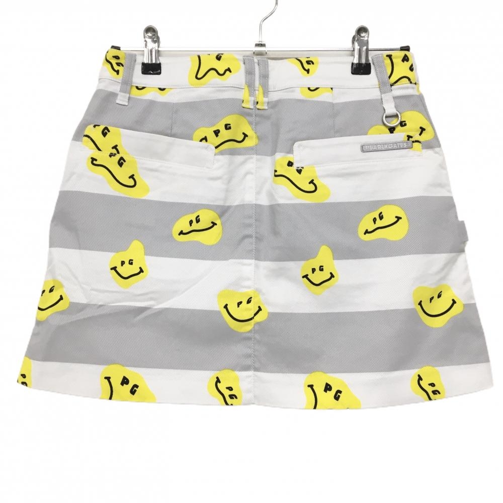【新品】パーリーゲイツ スカート 白×グレー×イエロー TOKE NIKO ボーダー ロゴ刺しゅう レディース 1(M) ゴルフウェア PEARLY GATES