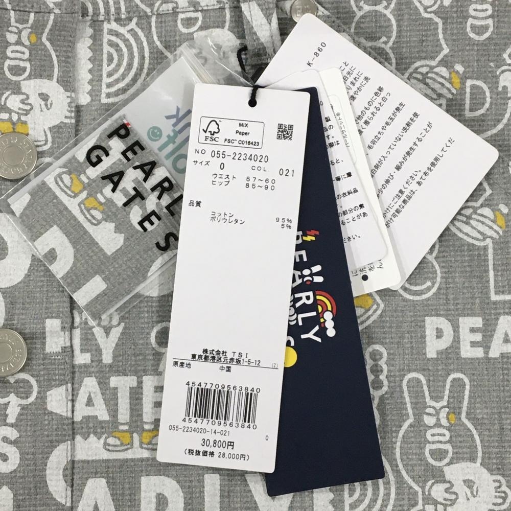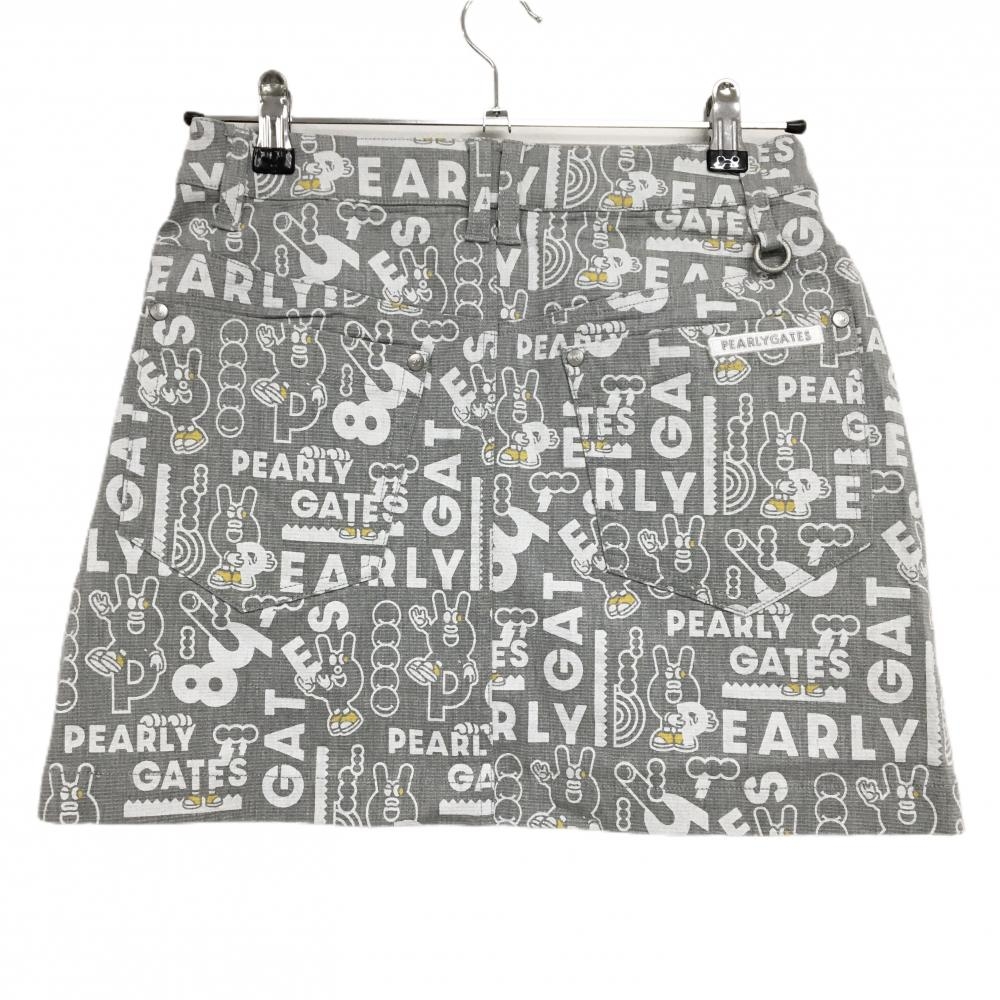 【新品】パーリーゲイツ スカート グレー×白 ロゴ総柄 どうしちゃったPG レディース 0(S) ゴルフウェア PEARLY GATES