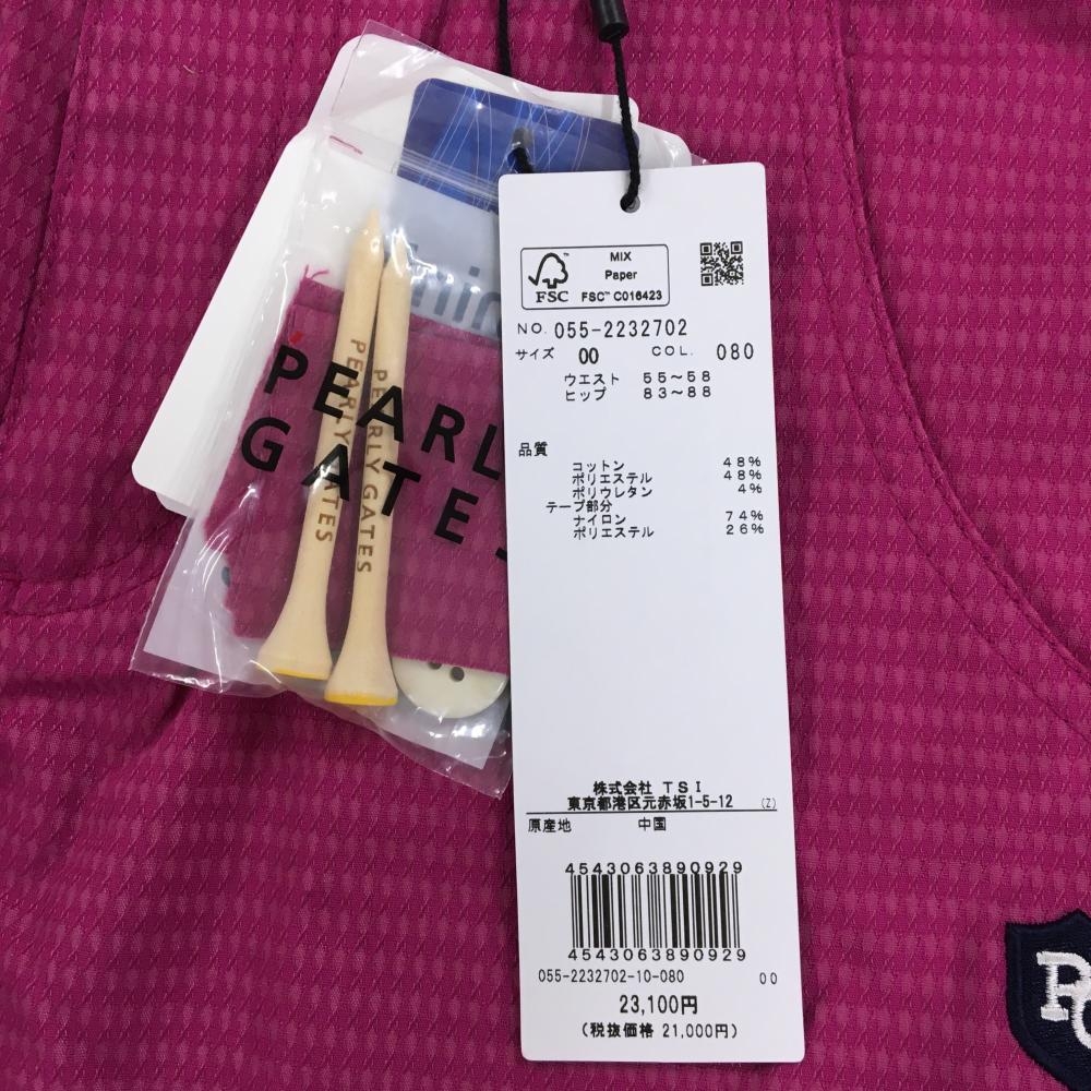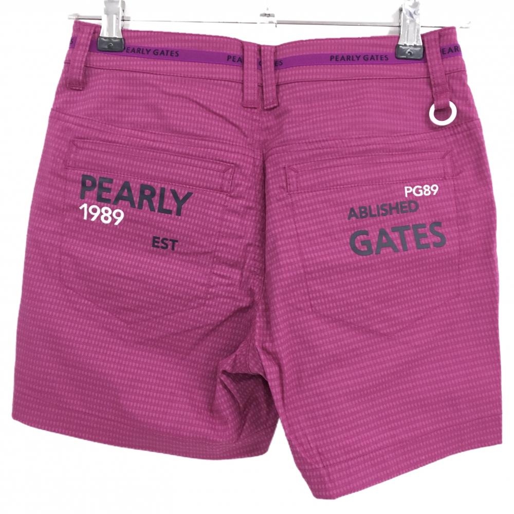 【新品】パーリーゲイツ ショートパンツ パープルピンク 総柄織生地 ティー付き 接触冷感 レディース 00(XS) ゴルフウェア PEARLY GATES