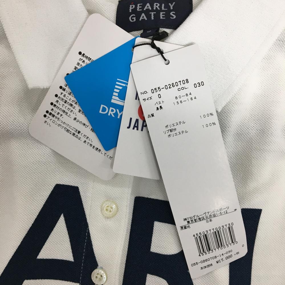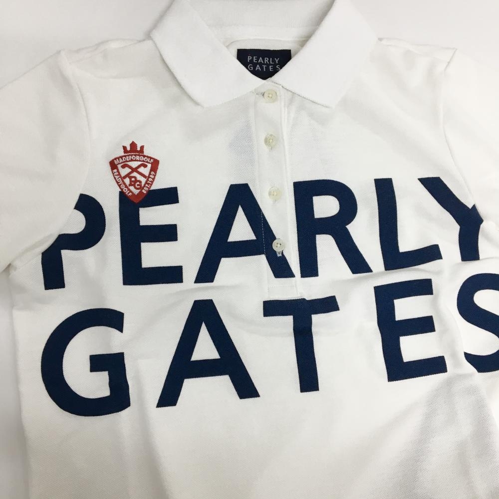 【新品】パーリーゲイツ 半袖ポロシャツ 白×ネイビー ビックロゴプリント レディース 0(S) ゴルフウェア PEARLY GATES