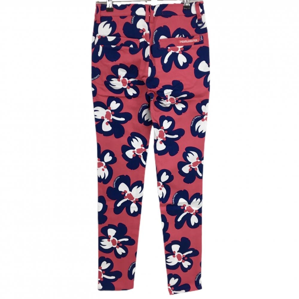 【新品】パーリーゲイツ パンツ レッドピンク×ネイビー 花柄 ロゴ刺しゅう レディース 0(S) ゴルフウェア PEARLY GATES