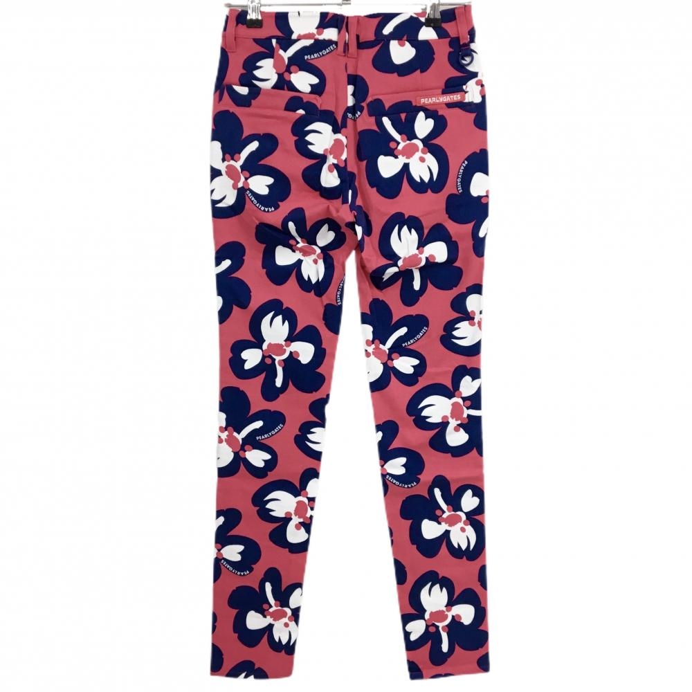 【新品】パーリーゲイツ パンツ レッドピンク×ネイビー 花柄 ロゴ刺しゅう レディース 0(S) ゴルフウェア PEARLY GATES