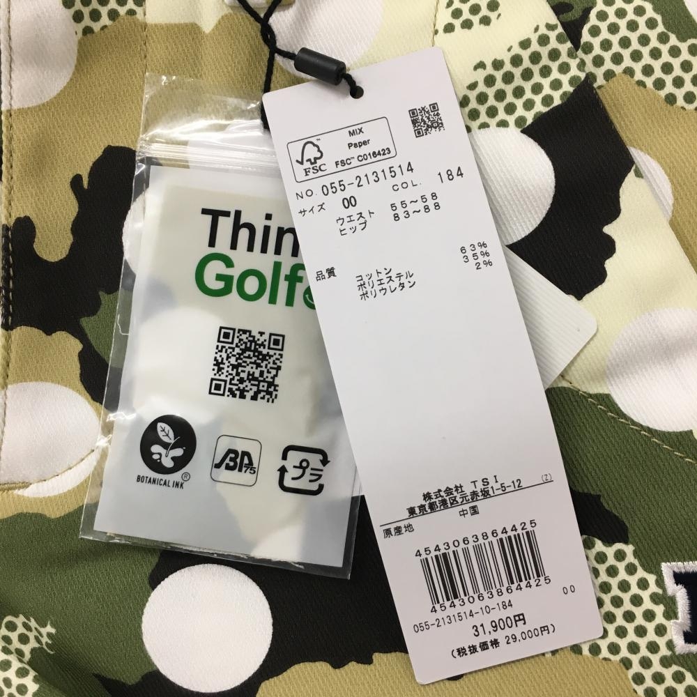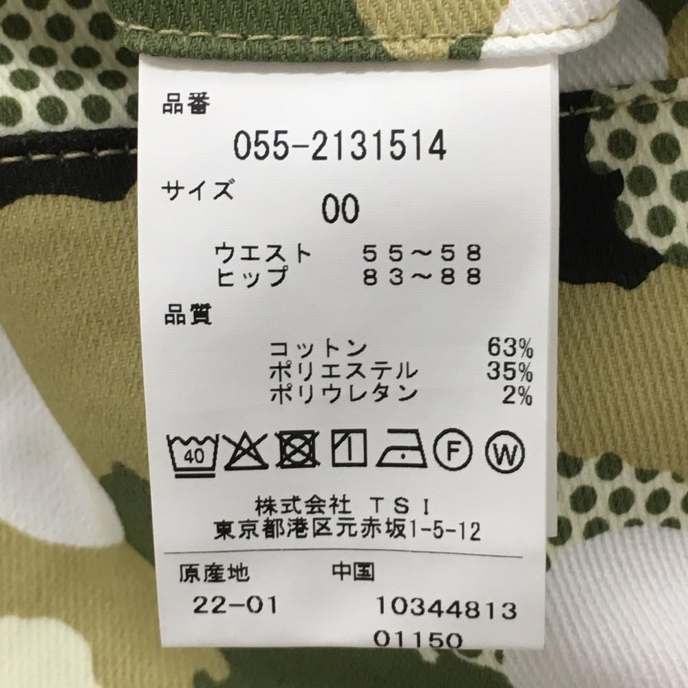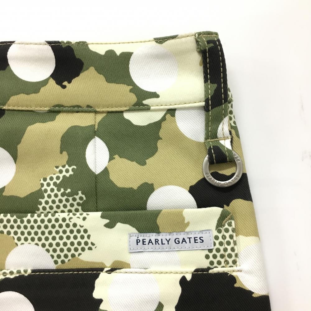 【新品】パーリーゲイツ パンツ カーキ×白 カモフラ調 迷彩 ドット ロゴ刺しゅう レディース 00(XS) ゴルフウェア PEARLY GATES