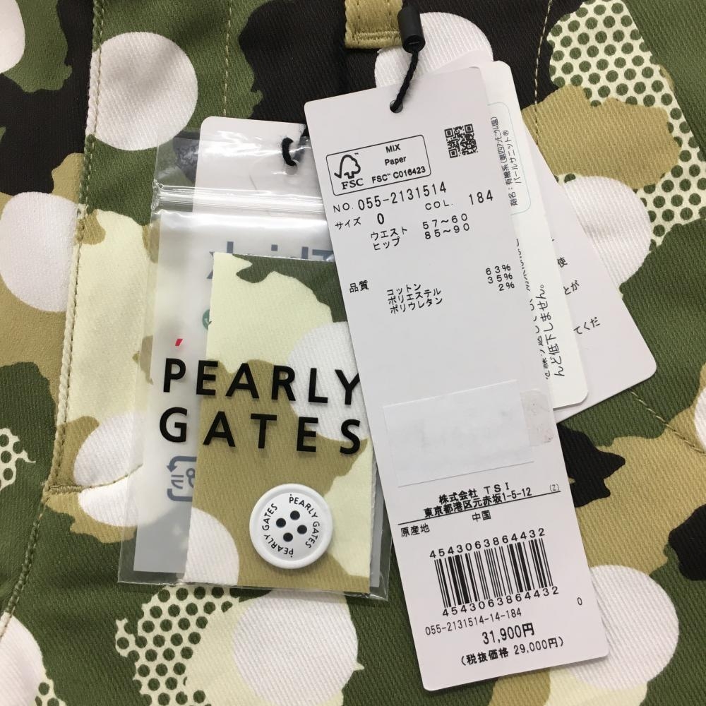 【新品】パーリーゲイツ パンツ カーキ×白 カモフラ調 迷彩 ドット ロゴ刺しゅう レディース 0(S) ゴルフウェア PEARLY GATES