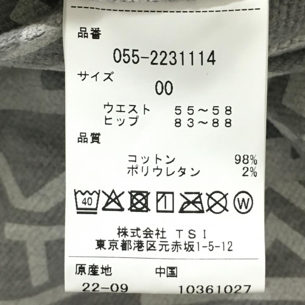【新品】パーリーゲイツ パンツ グレー×白 総柄 ロゴ刺しゅう ストレッチ 表微起毛 レディース 00(XS) ゴルフウェア PEARLY GATES