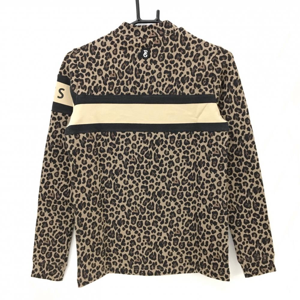【新品】パーリーゲイツ 長袖ハイネックシャツ ライトブラウン×黒 レオパードヒョウ柄 レディース 0(S) ゴルフウェア PEARLY GATES