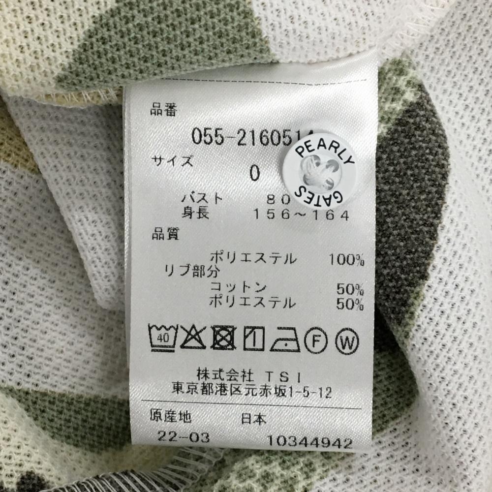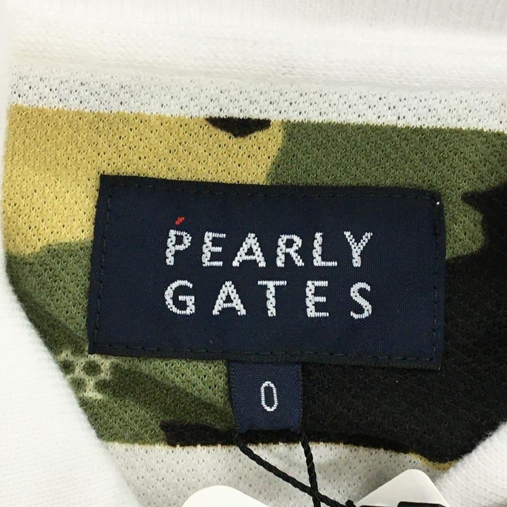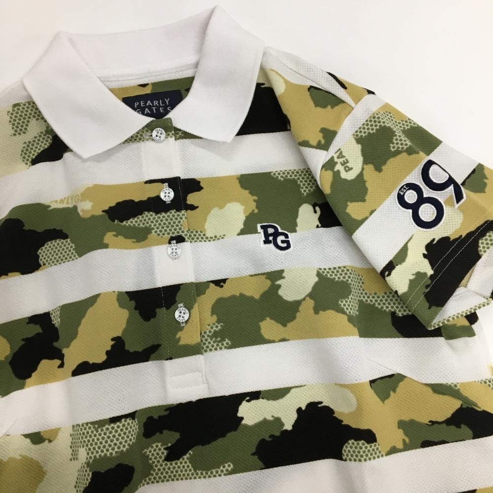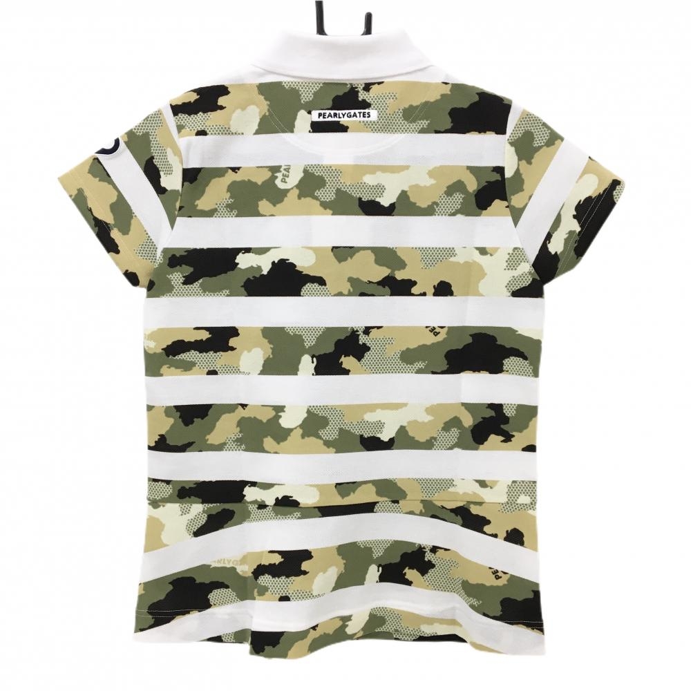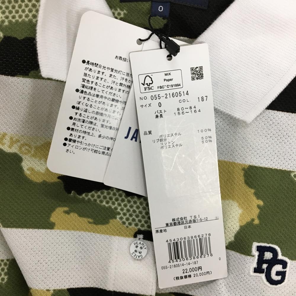 【新品】パーリーゲイツ 半袖ポロシャツ 白×カーキ系 ボーダー 迷彩 カモフラ ロゴ刺しゅう レディース 0(S) ゴルフウェア PEARLY GATES