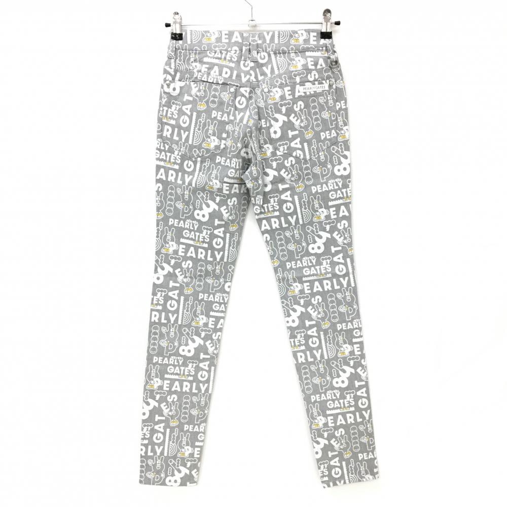 【新品】パーリーゲイツ パンツ グレー×白 ロゴ総柄 どうしちゃったPG レディース 00(XS) ゴルフウェア PEARLY GATES
